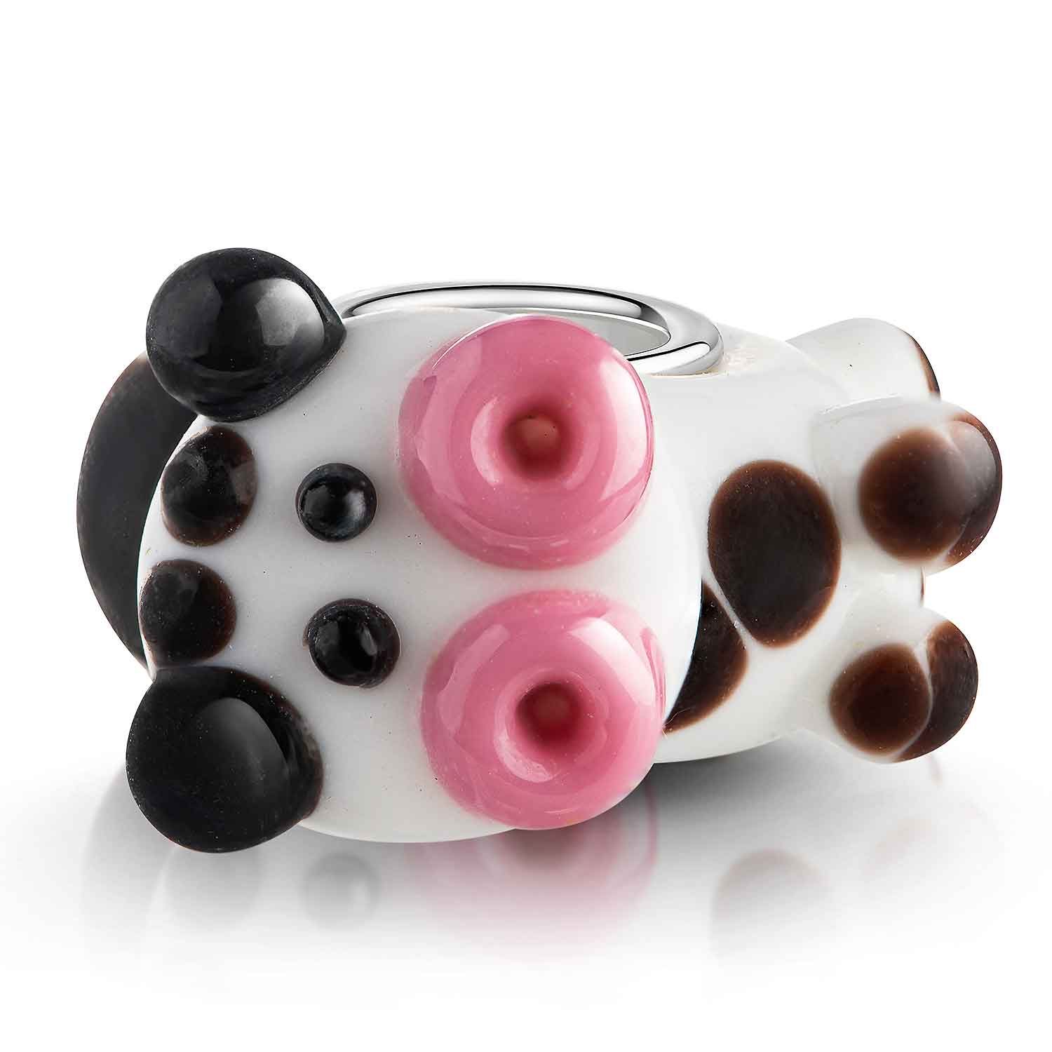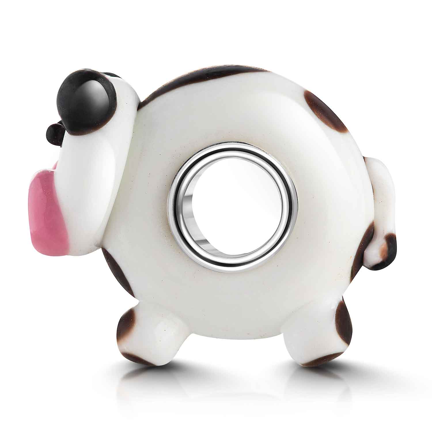 Glas Bead mit lustigem 3D Kuh Motiv sowie 925er Silber Hülse. Dieses Beads Element ist passend auf alle Beads Armbänder und Ketten mit einer max. Stärke von 4,4mm.