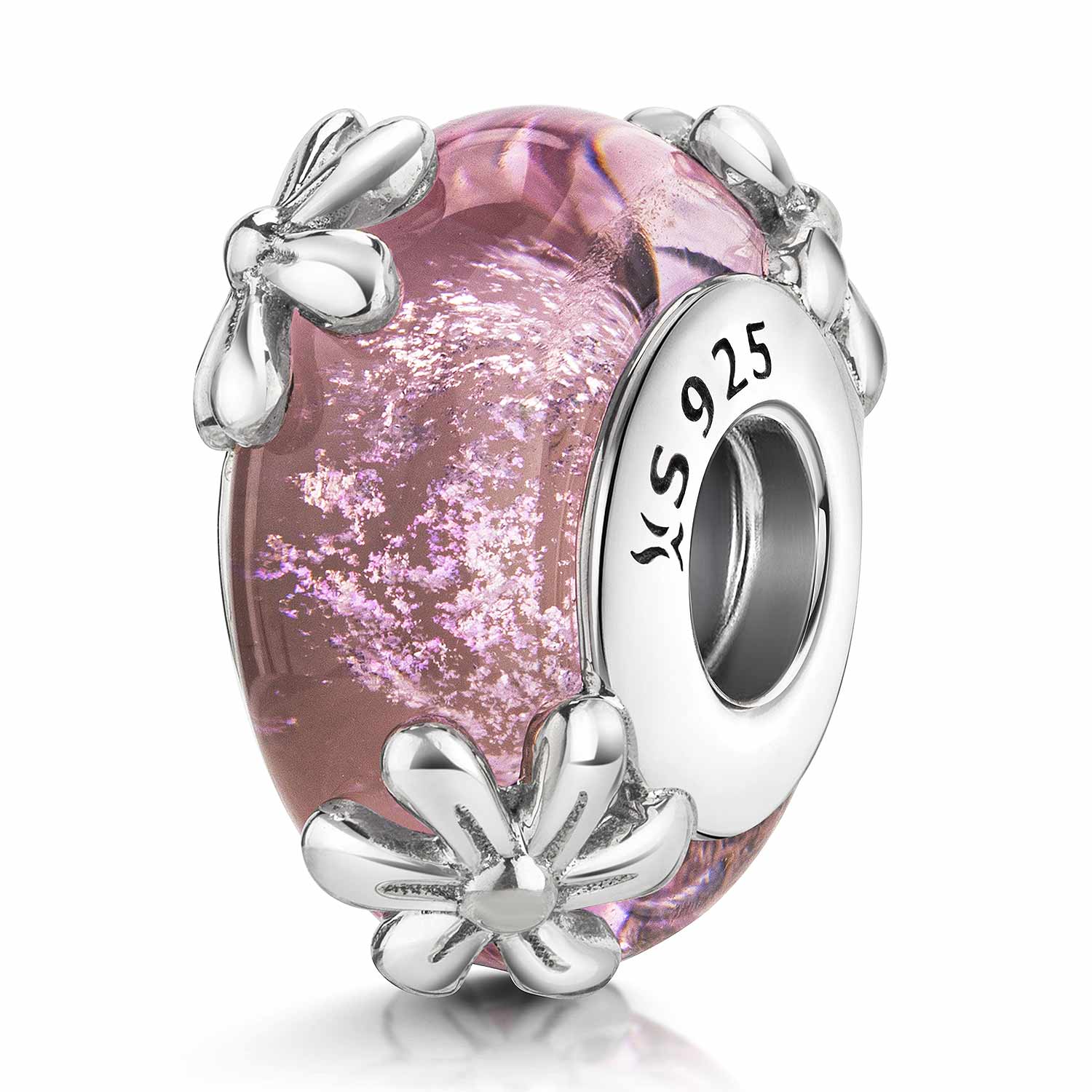 Die Motive auf dem Bead sind inspiriert von der Schönheit der Natur, wobei die Blumen im Mittelpunkt stehen. Ihre zarte rosa Farbe strahlt Frische und Lebensfreude aus, während die Glitzerpartikel im Glas dem Bead einen funkelnden Effekt verleihen, der jedes Lichtspiel reflektiert und so Ihre Kreationen zum Strahlen bringt.