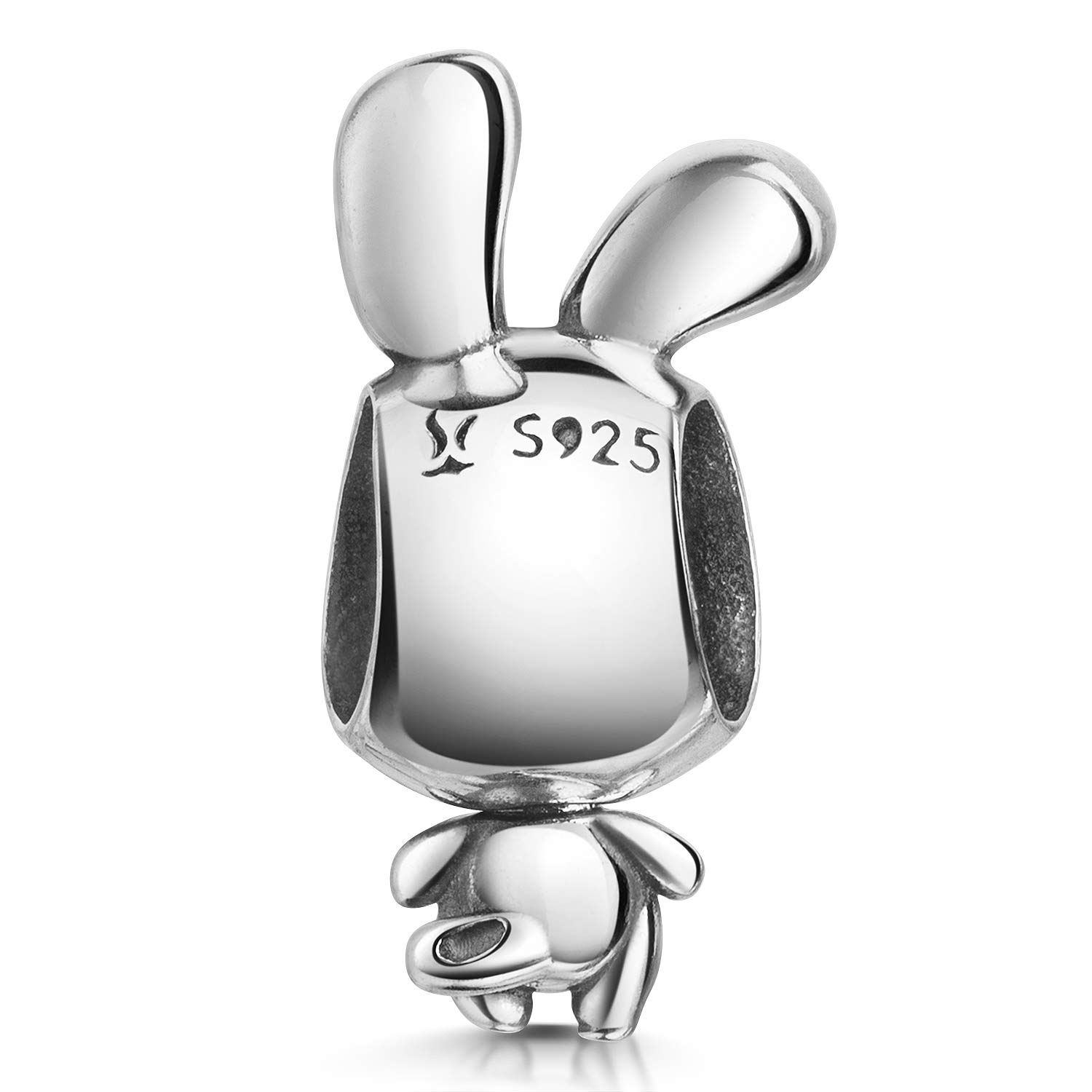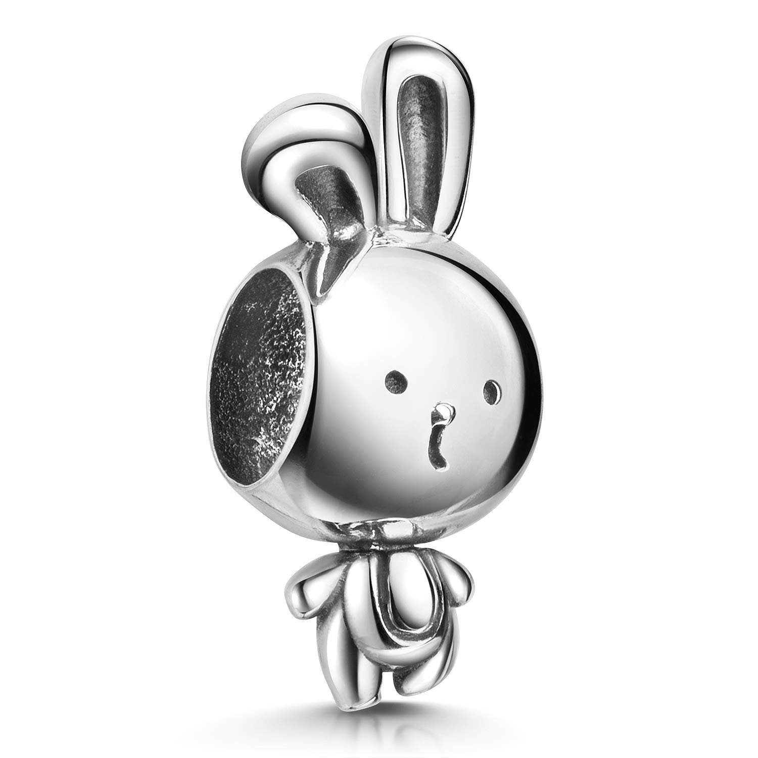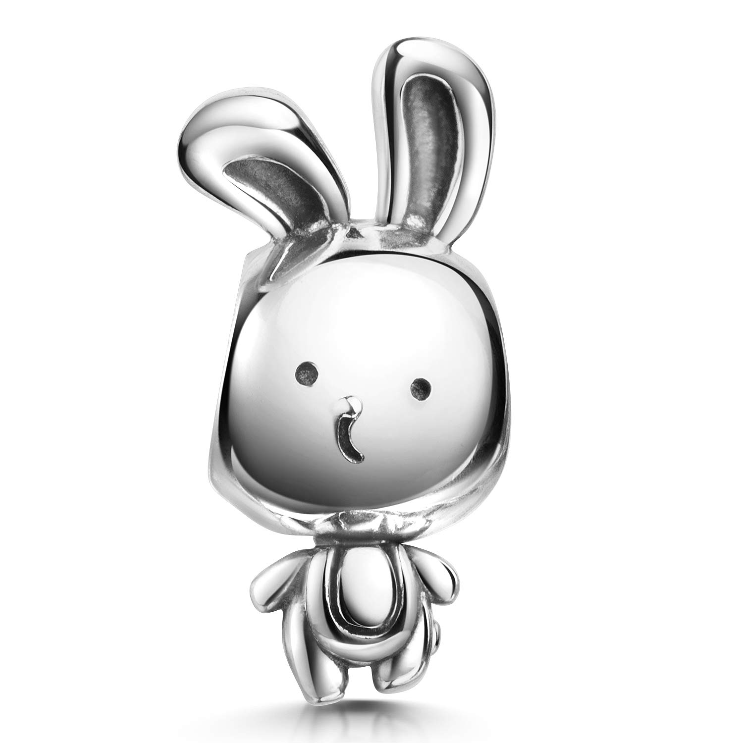 Lustiger Bead im Design eines Hasen aus 925er Sterling Silber, geeignet für Armbänder und Ketten bis 4,4mm Durchmesser.