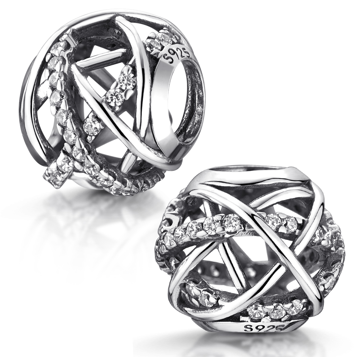 Runder Bead als Netz mit weißen Zirkonia Steinen aus 925 Sterling Silber. Dieser Silber Anhänger ist passend für Beads Armbänder und Ketten bis 4,4mm.