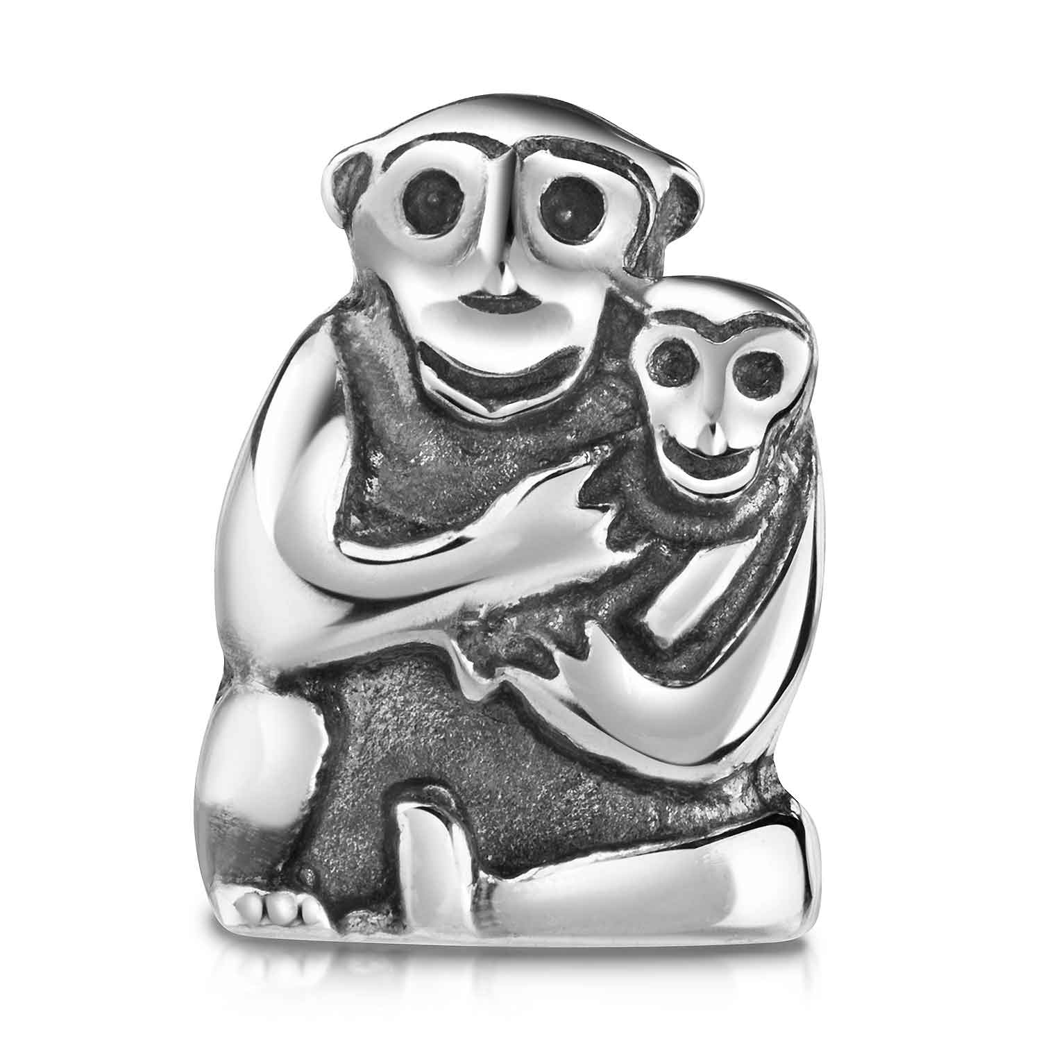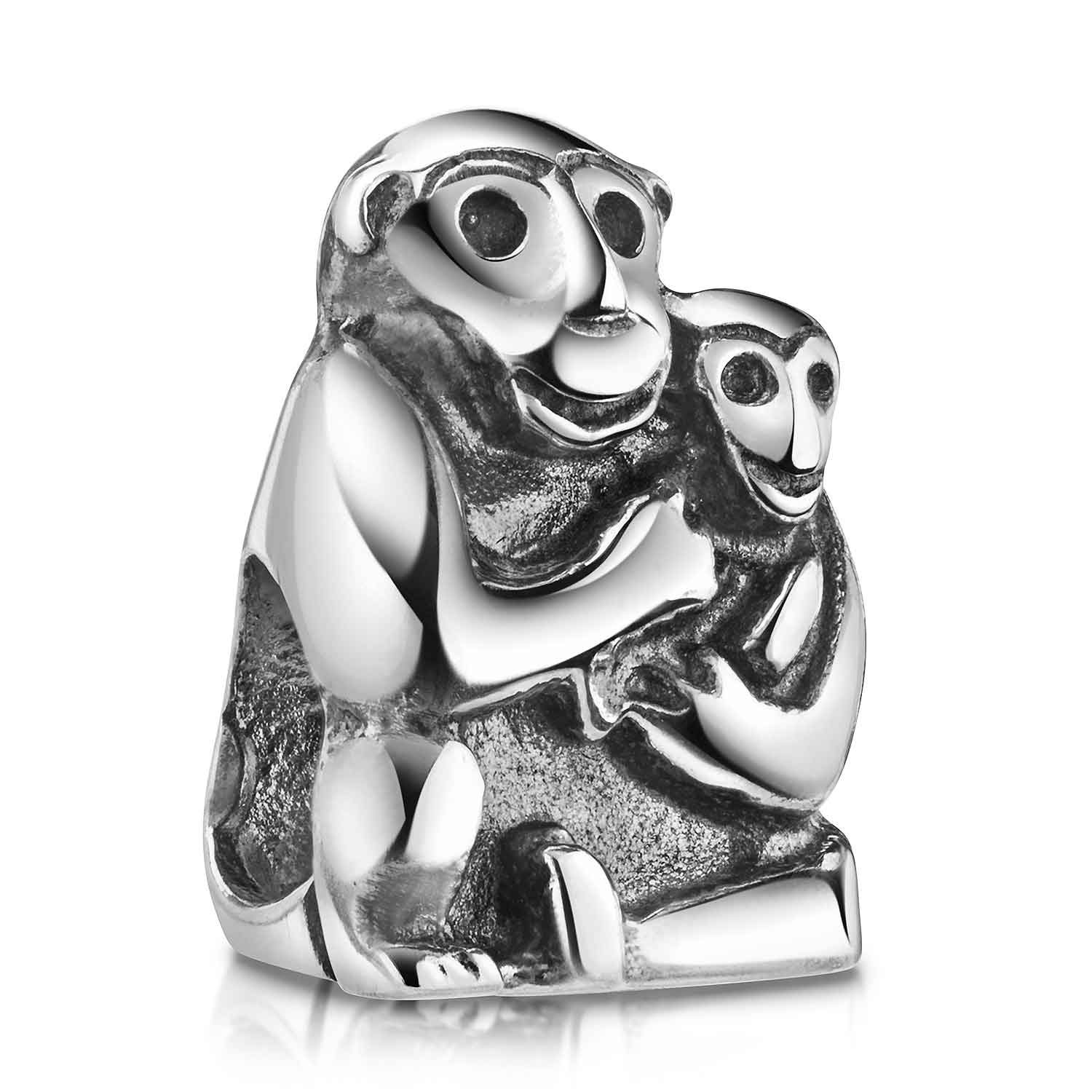 Lustiger Bead Anhänger in Form von Affenmutter mit Kind, hergestellt aus 925 Sterling Silber.