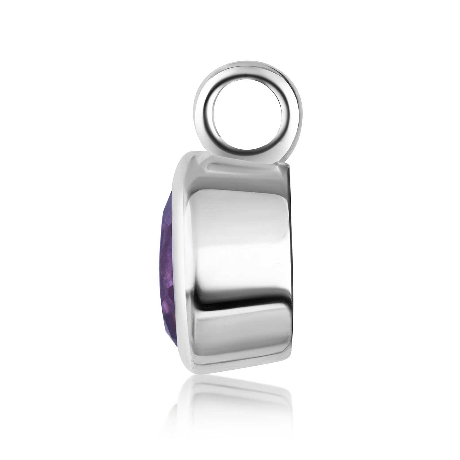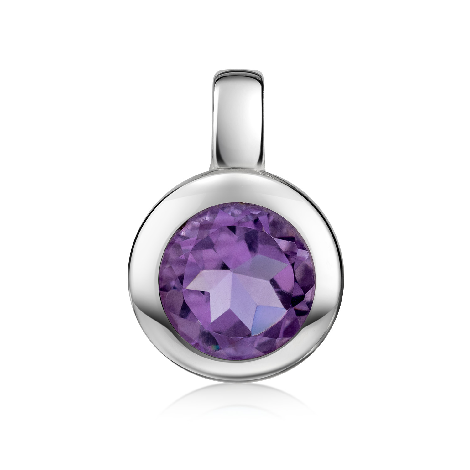 Runder Kettenanhänger aus 925 Sterling Silber mit einem facettierten Amethyst. Wahlweise mit einer passenden Ankerkette erhältlich.