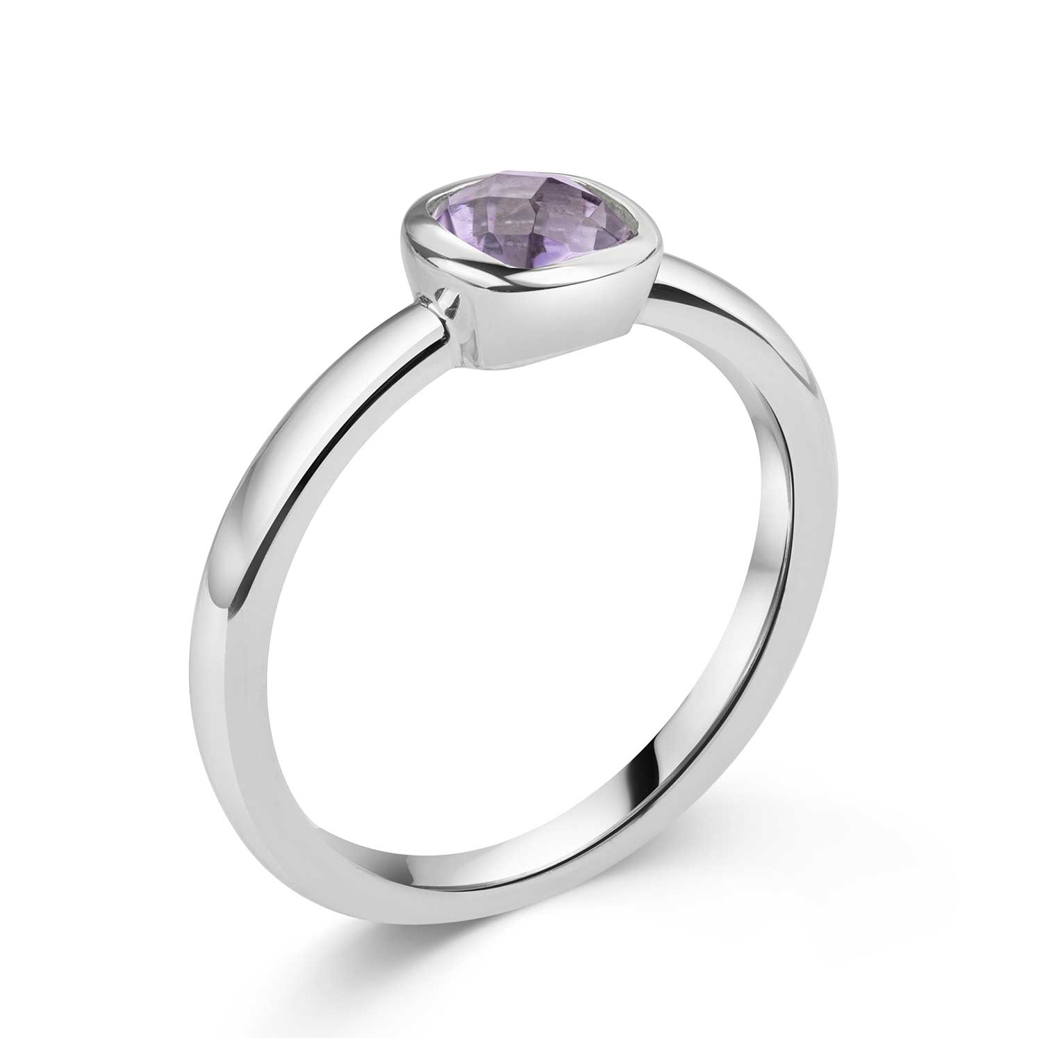 Quadratischer Damenring aus 925 Sterling Silber mit einem lilanen Amethyst-Edelstein in facettiertem Schliff.