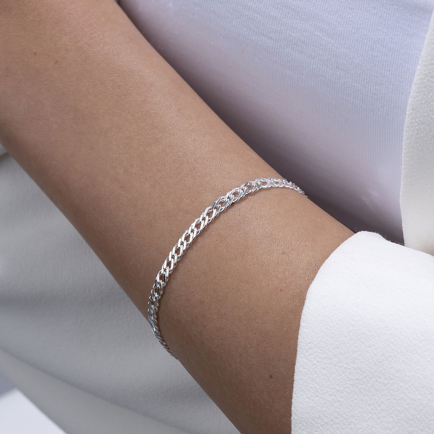 Damen Armband 3,9mm im flachen Zwillingspanzerketten Design, Made in Germany, hergestellt aus 925 Sterling Silber.