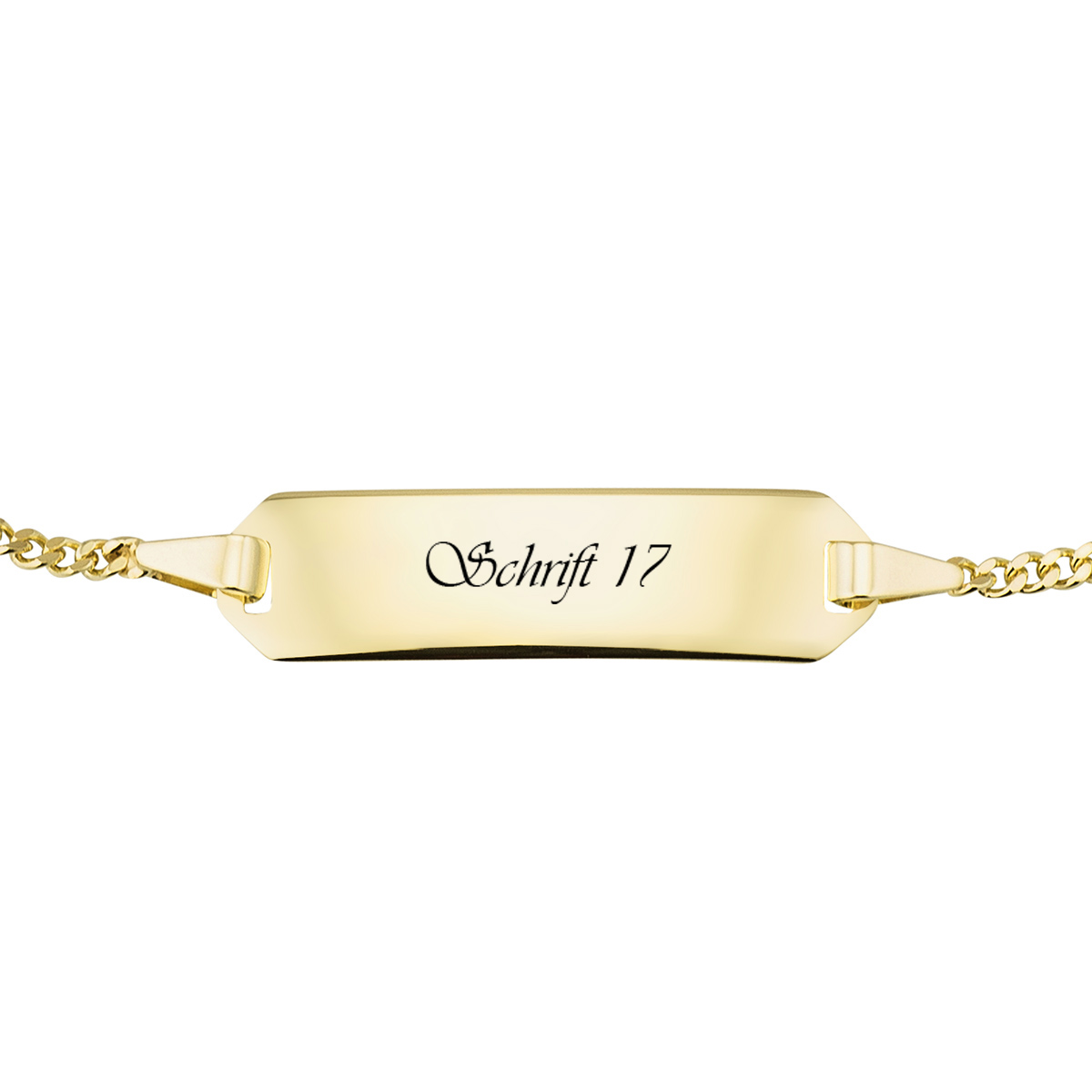 Einfach zauberhaft ist unser Goldarmband mit edlen Endeinfassungen. Sie können sowohl die Vorder- als auch die Rückseite gegen einen einmaligen Aufpreis mit einer persönlichen Botschaft versehen lassen. Somit eignet es sich ideal als Geschenk für wichtige Ereignisse im Leben Ihres Kindes, wie Geburtstag, Taufe, Weihnachten, Ostern oder als eine kleine Freude zwischendurch.