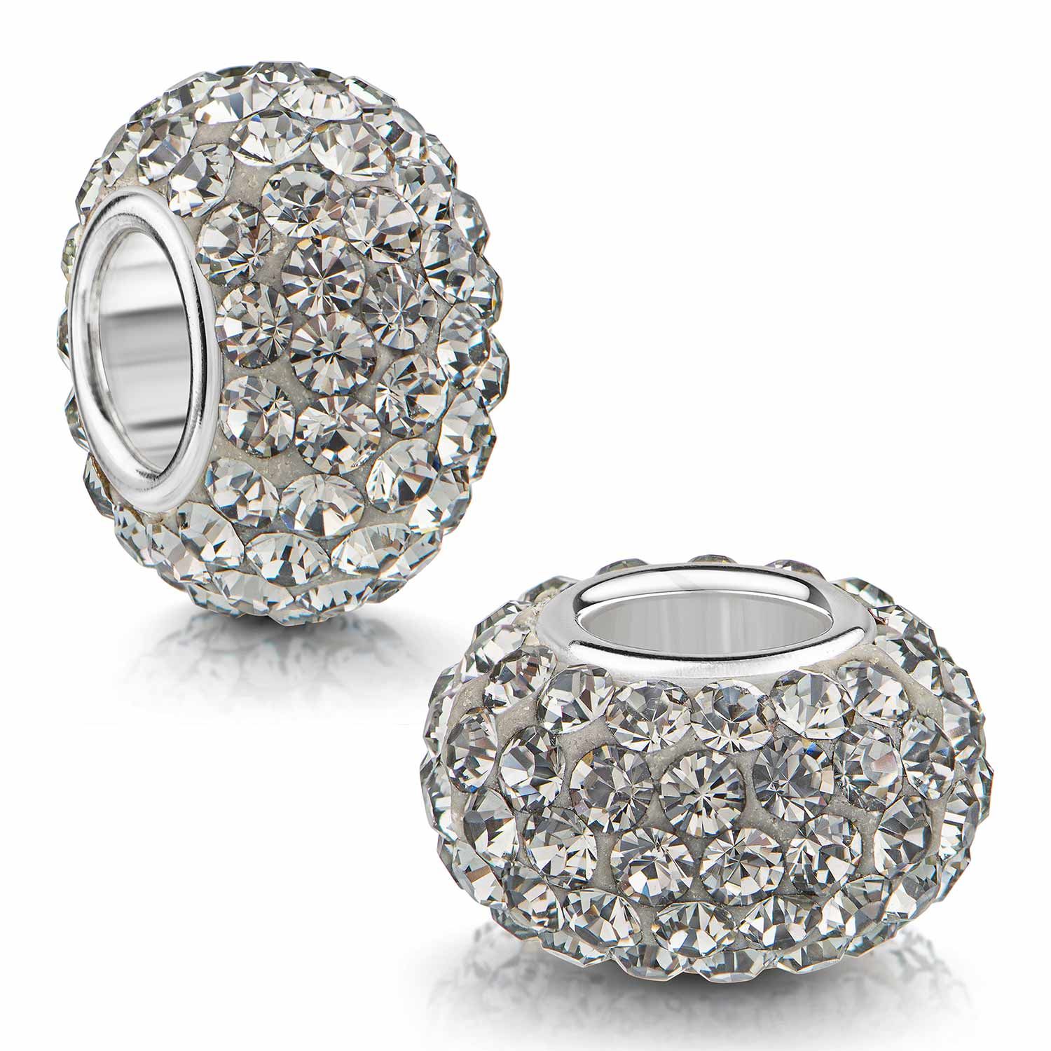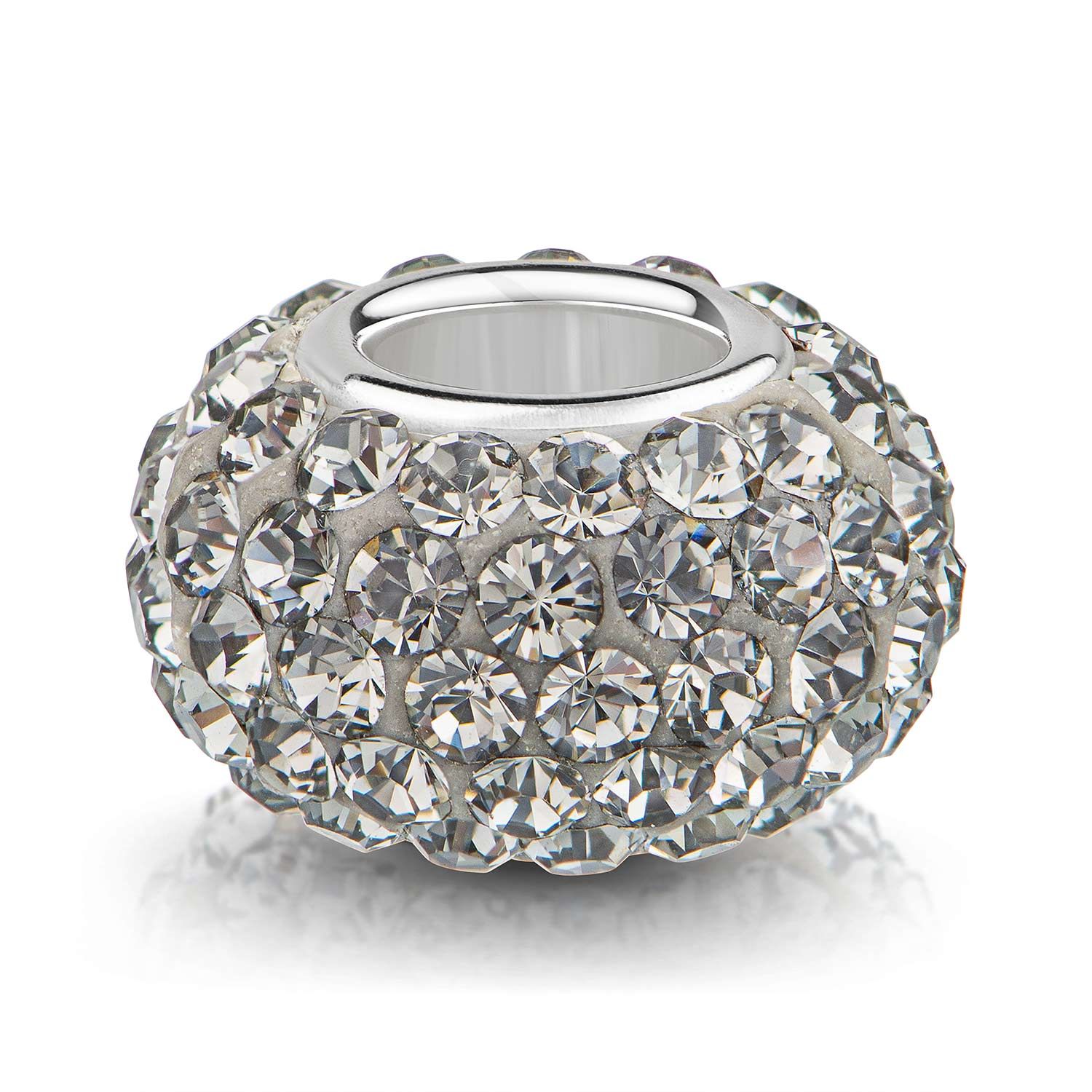 Kristall Bead aus Glaskristallsteinen in Grau mit einer Hülse aus massivem 925 Sterling Silber. Der Bead passt auf alle Armbänder und Ketten bis 4,4mm Stärke.