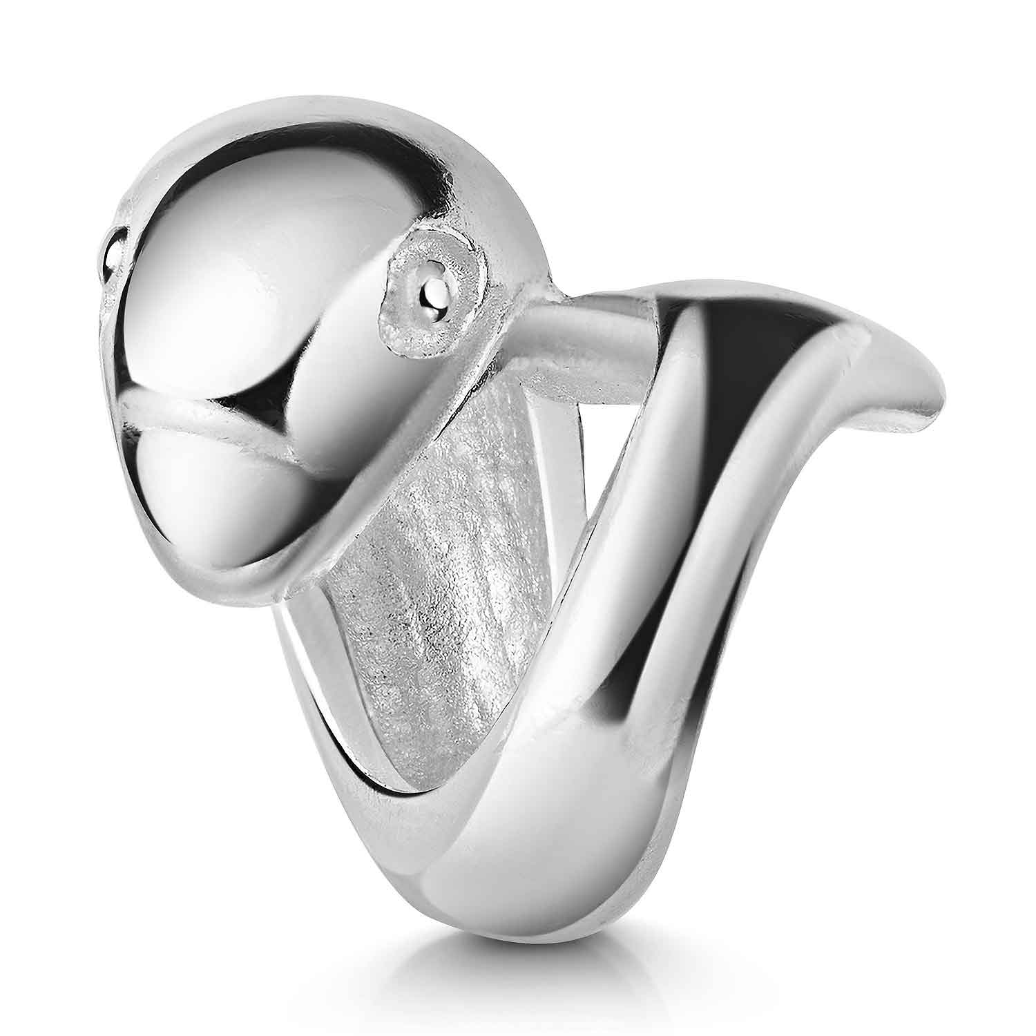 Lustiger Bead im Design eines Delfins aus 925er Sterling Silber, geeignet für Armbänder und Ketten bis 4,5mm Durchmesser.
