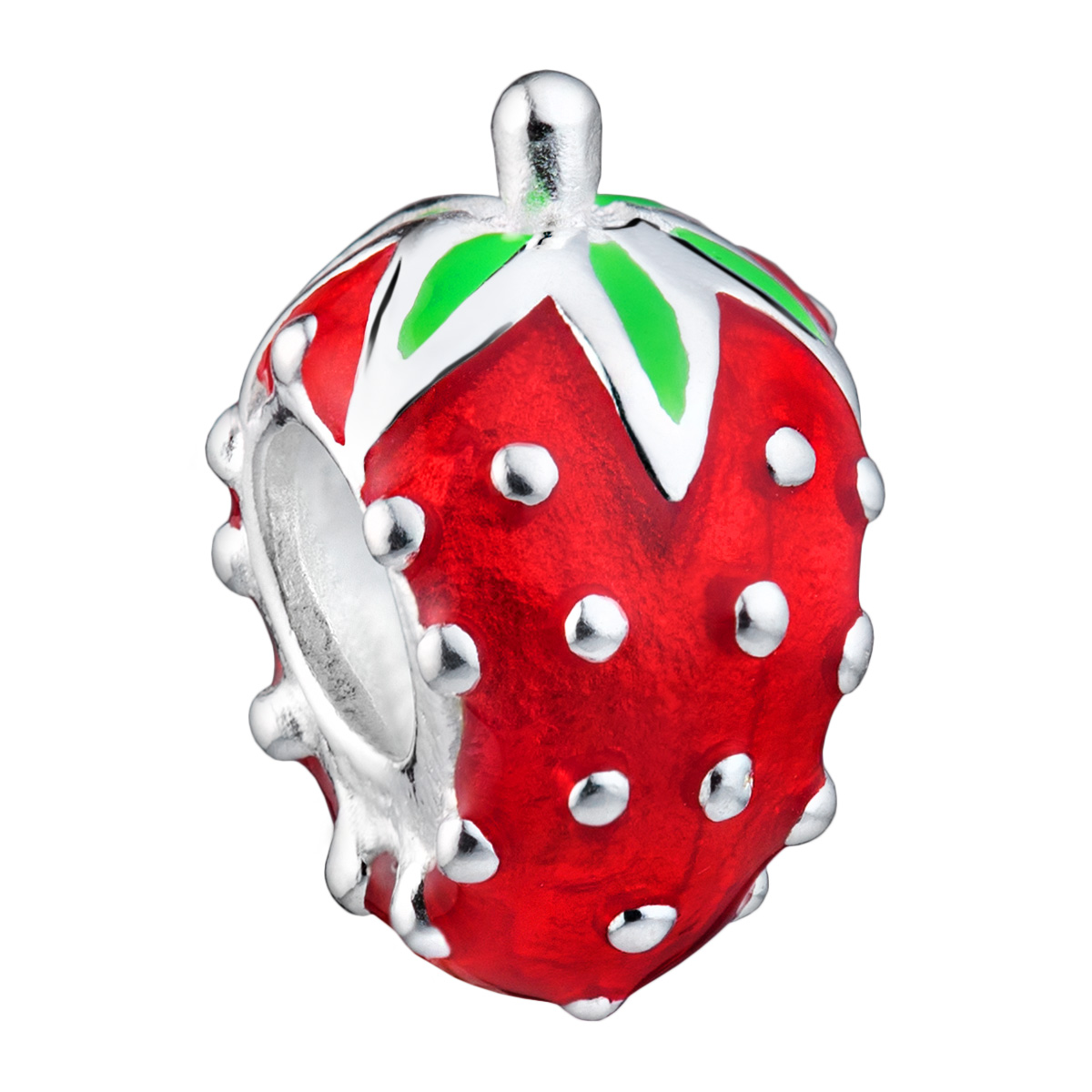 Süßer Beads Element mit saftiger Erdbeere, mit rotem und grünem Emaille-Lack überzogen. Der Silber Anhänger ist bei Kindern wie auch bei Frauen sehr beliebt.