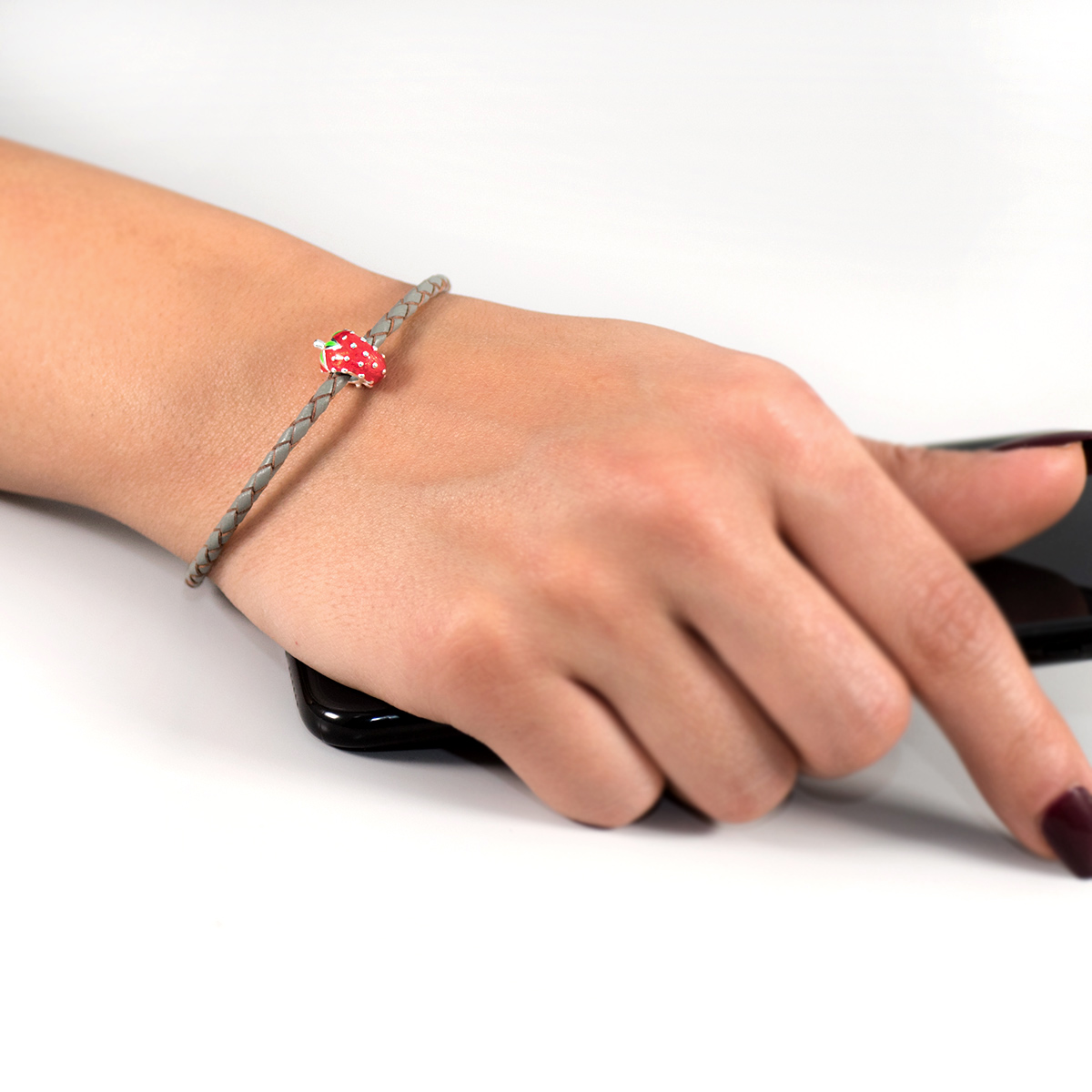 Der Schmuck Bead ist aus 925 Sterling Silber gefertigt und mit Emaille-Lack überzogen. Er ist für Kinder, aber auch für Damen mit Vorliebe für farbenfrohe Motive eine niedliche Ergänzung am Armband.