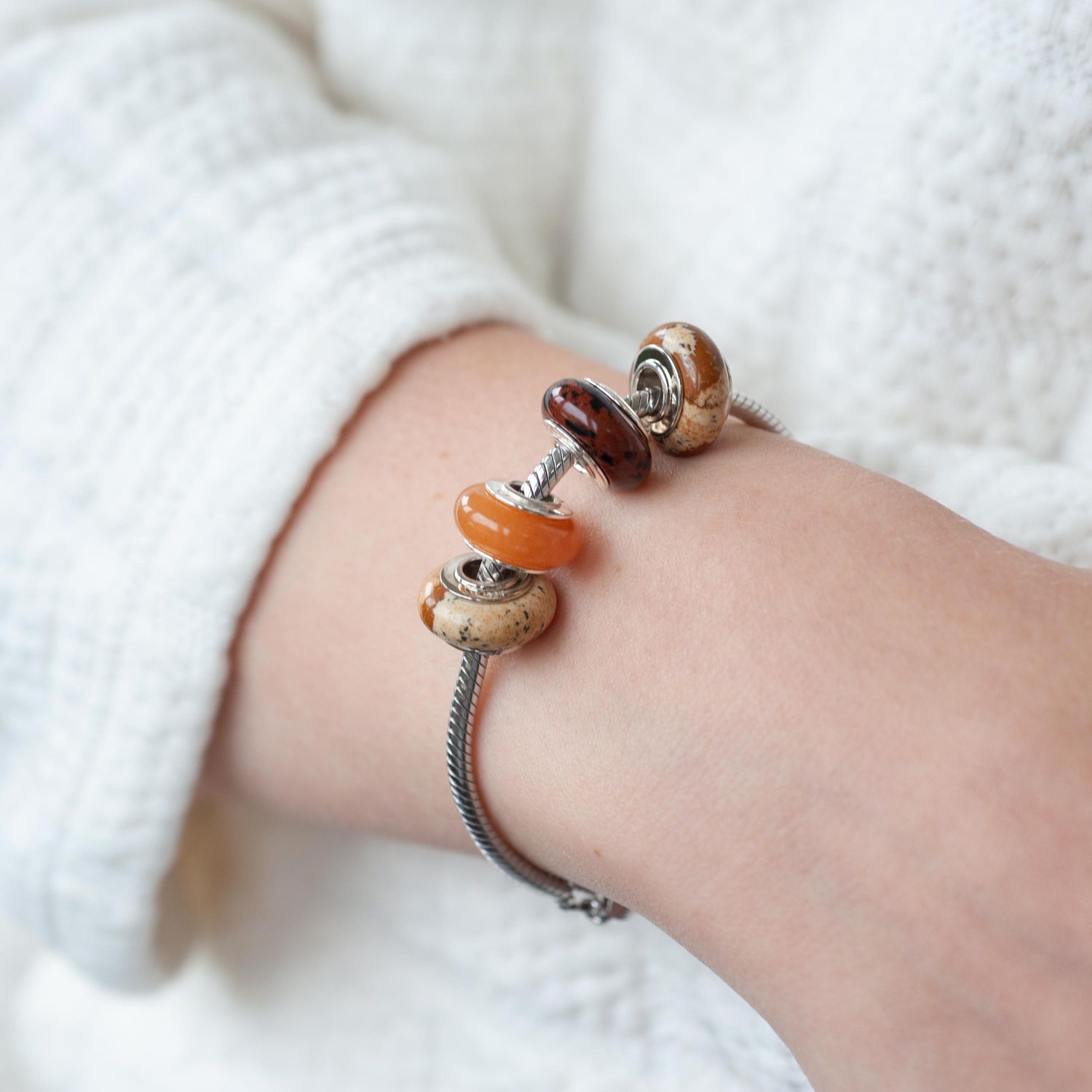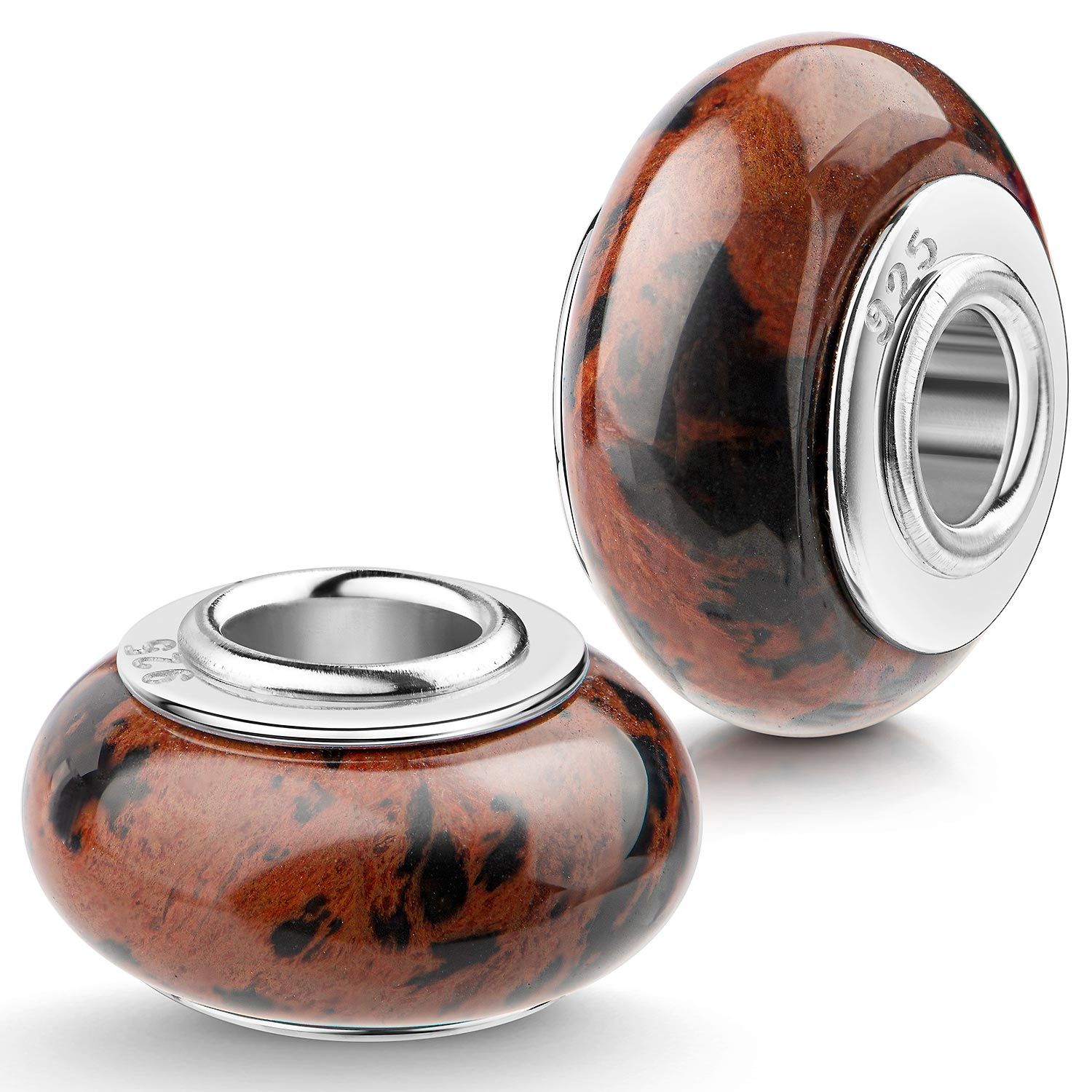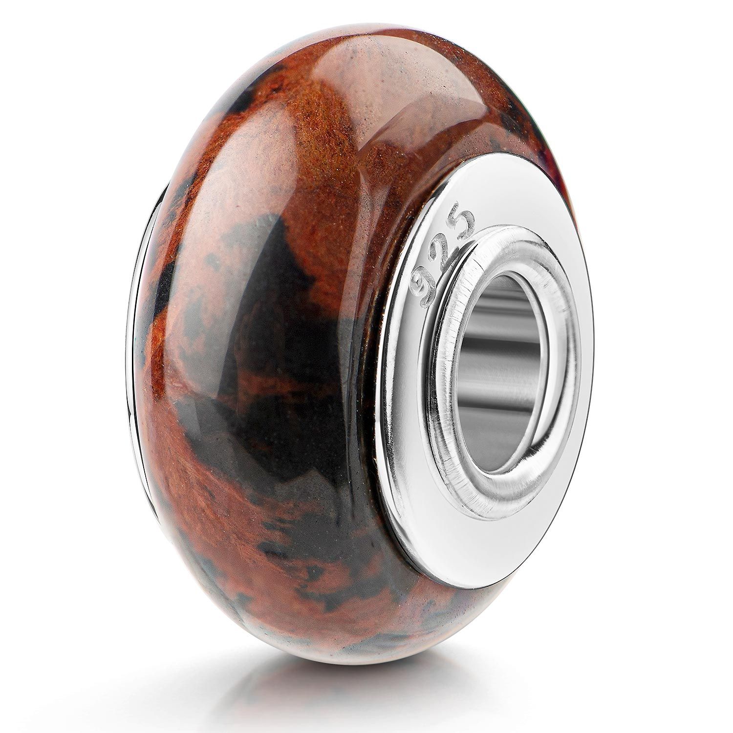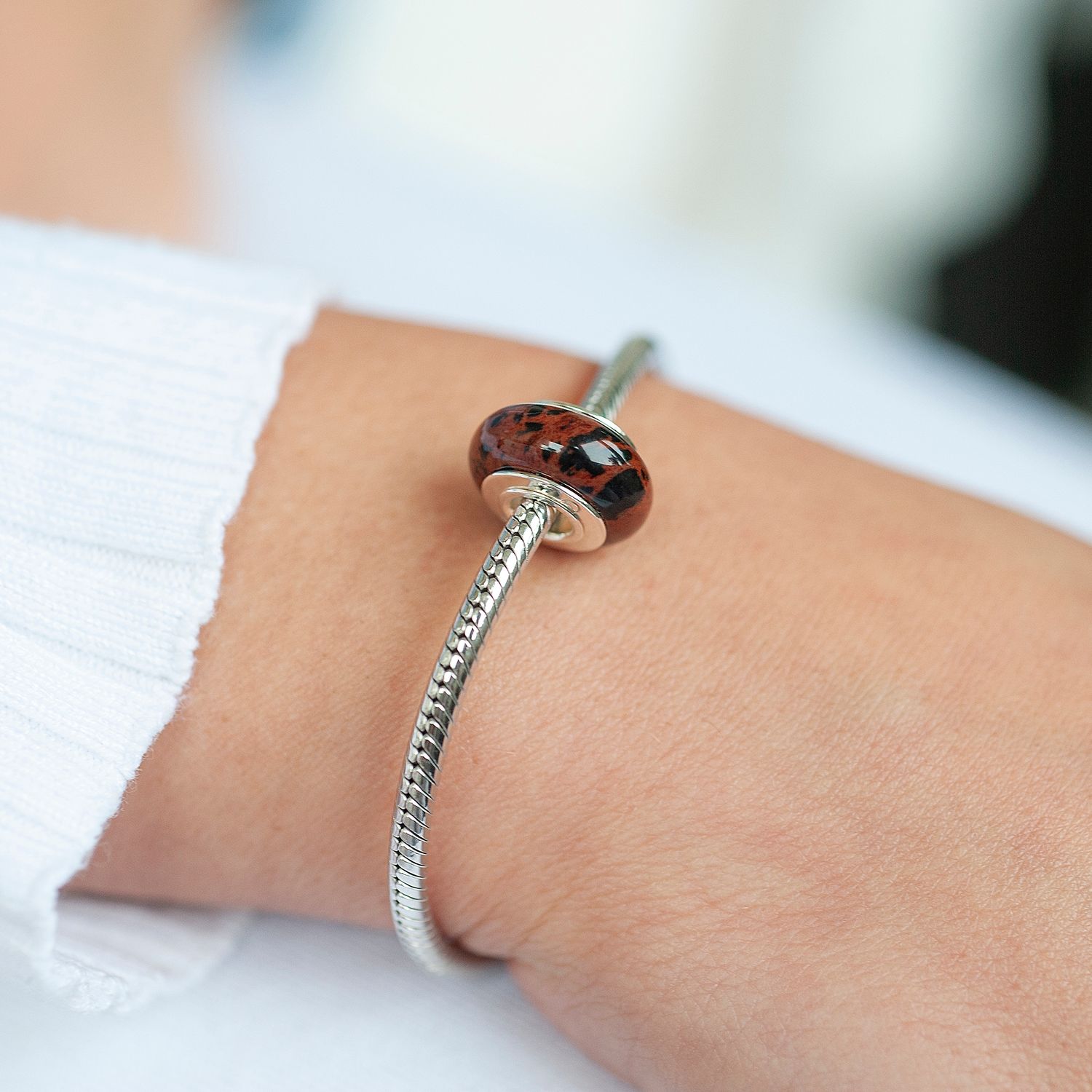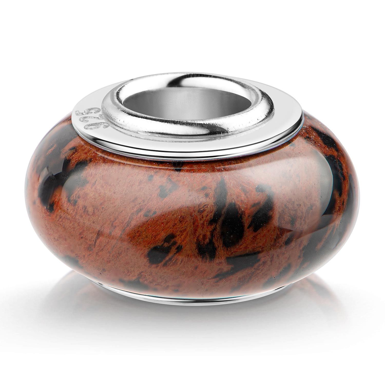 Der Schmuck Bead aus Mahagoni Jaspis ist mit einer breiten massiven Hülse aus 925 Sterling Silber ausgestattet. Er eignet sich ideal für Naturstein Armbänder oder Ketten.