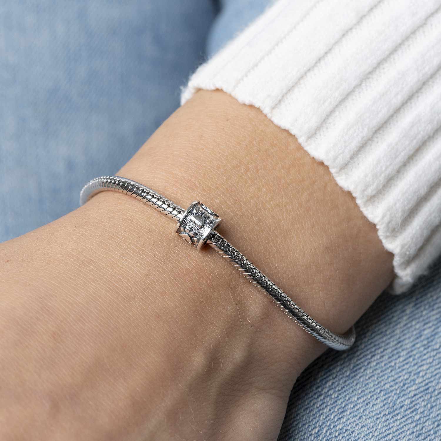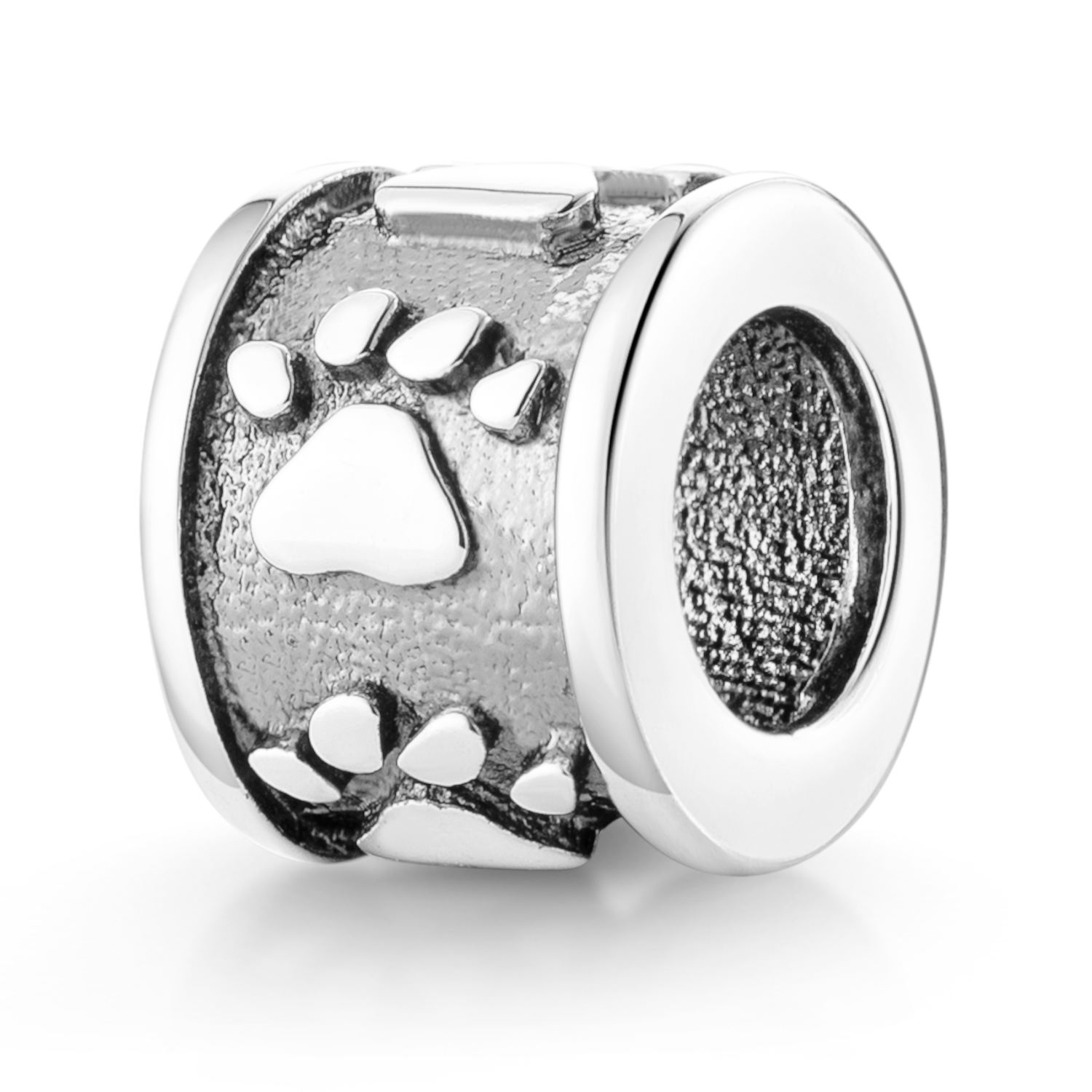 Wunderschön gearbeiteter Silber Bead Spacer aus 925 Sterling Silber in antiker Ausführung im Pfotendesign. Das Silber Element ist passend zu allen gängigen Beads Armbändern und Ketten bis max. 4,4mm Stärke und ist somit kompatibel zu fast allen bekannten Beads Herstellern.