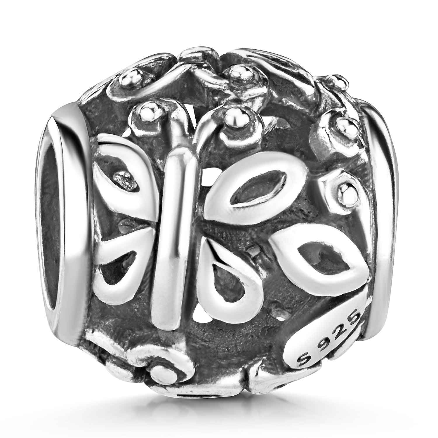 Antiker Bead mit Schmetterlingen aus 925 Sterling Silber. Der Charm ist kompatibel für Beads Armbänder bis 4,4mm und somit passend zu den meisten Marken Beads.