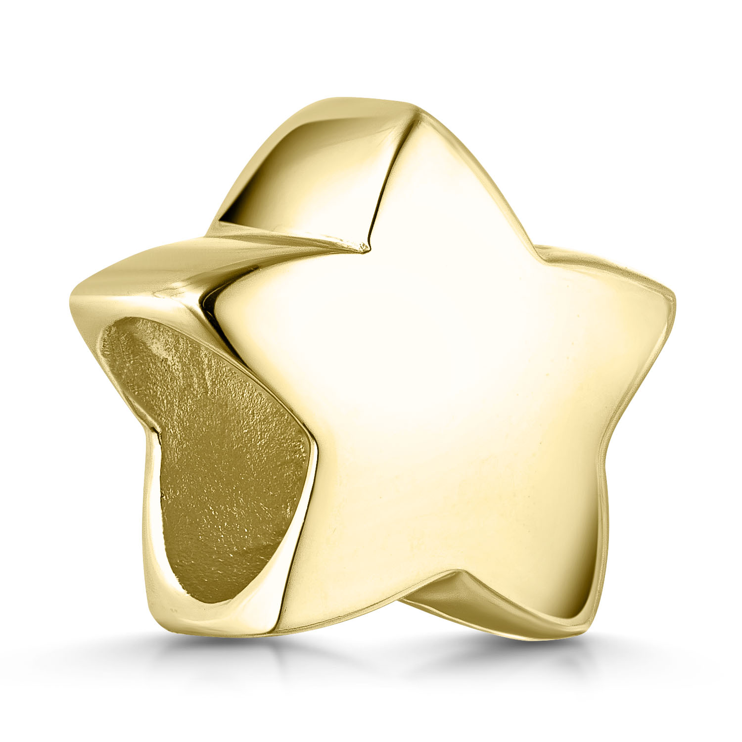Der Beads Anhänger Stern aus 925er Sterling Silber wurde mit Gelbgold überzogen und hochglanzpoliert. Der Gold Charm ist in sehr edler Optik gehalten. Das kleine Schmuckstück ist ein wahrer Hingucker an Ihrem Armband oder einer passenden Halskette.