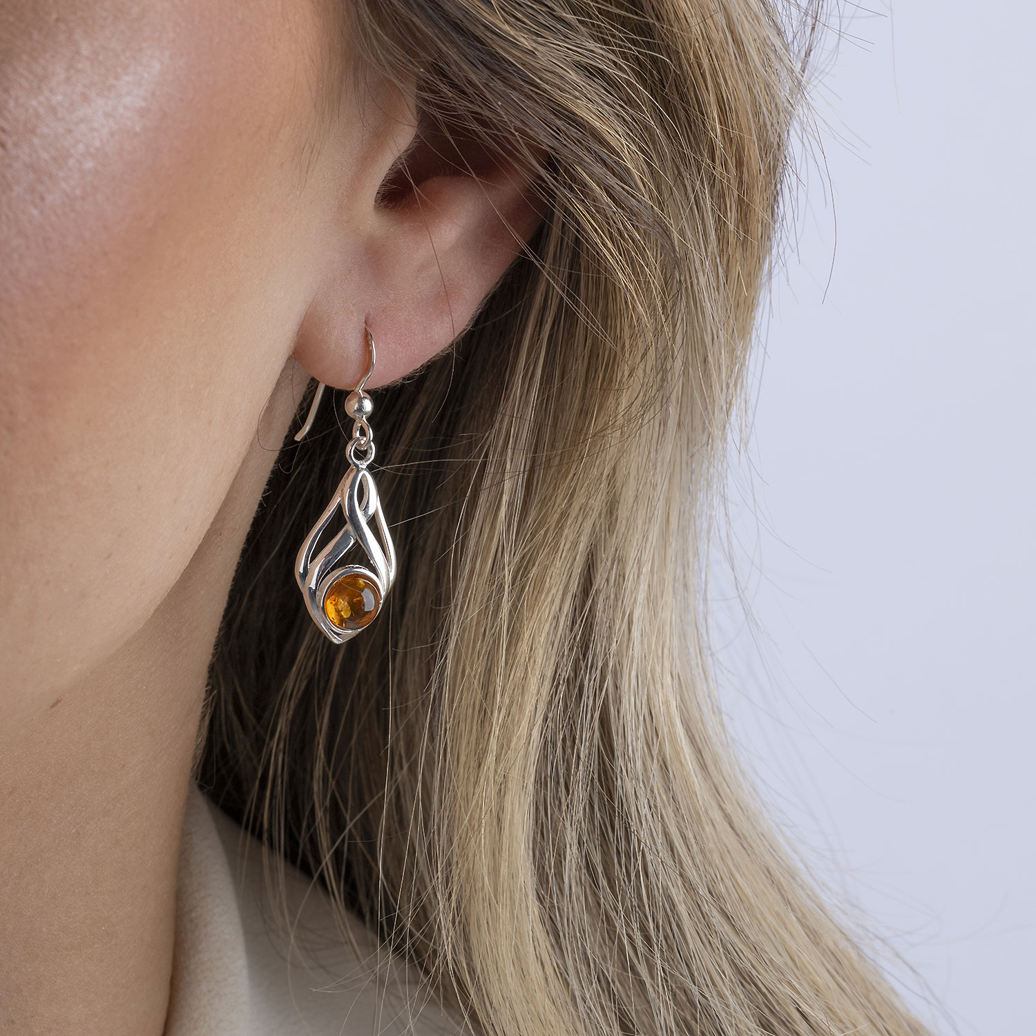 - Ohrhänger mit eingefasstem echtem Bernstein