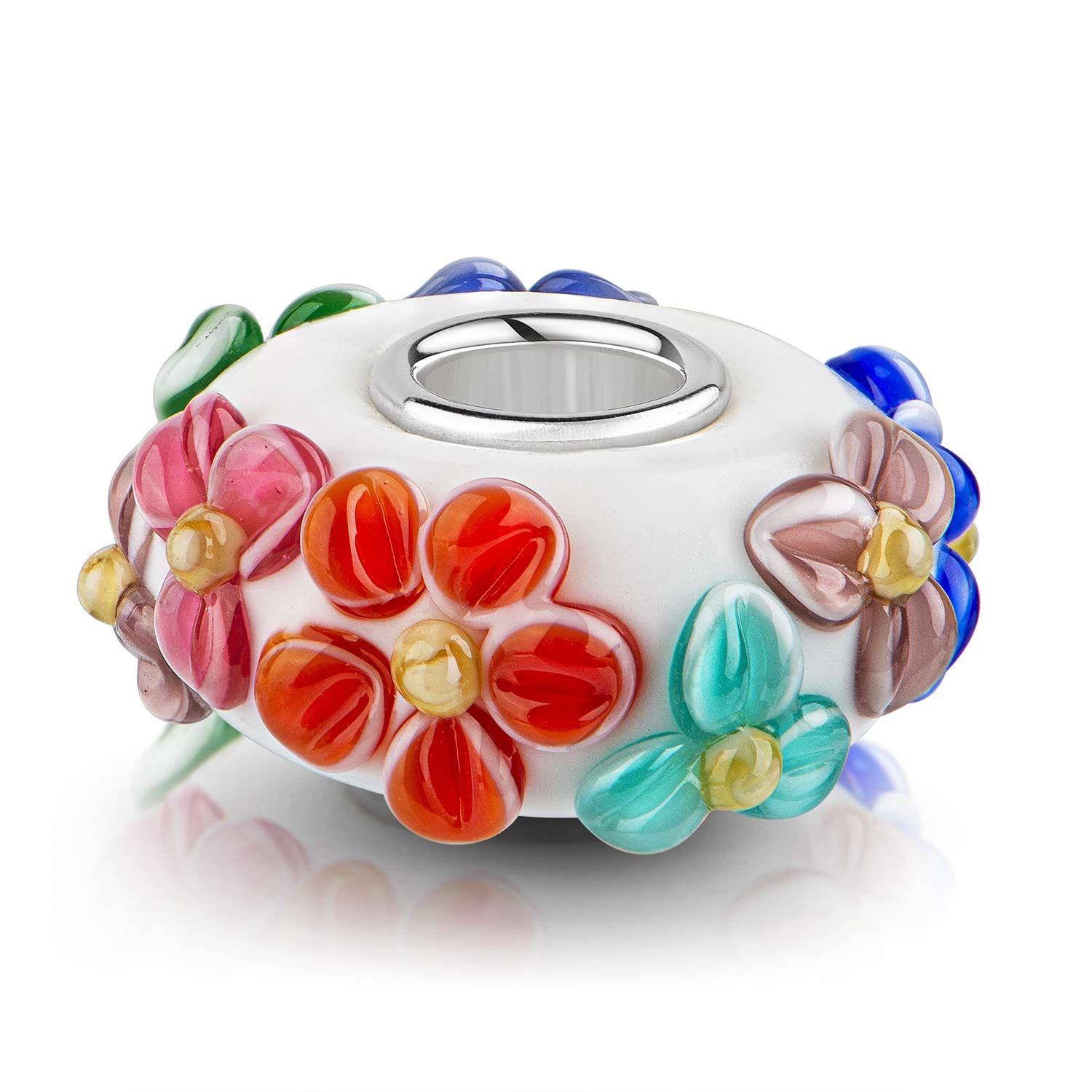 Glas Bead mit bunten Blüten wirkt durch sein 3D Design sehr edel und erhält dadurch eine schöne hervorstechende Oberfläche.