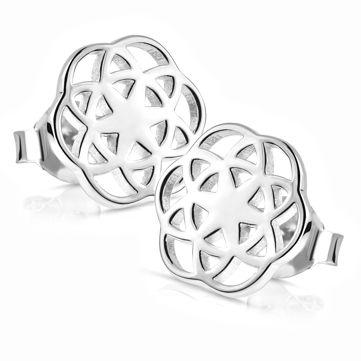Edle Ohrstecker Lebensblume aus 925 Sterling Silber in exzellenter Qualität. Die Blumen-Ohrringe wurden hochwertig rhodiniert und sind somit gegen ein Anlaufen geschützt.