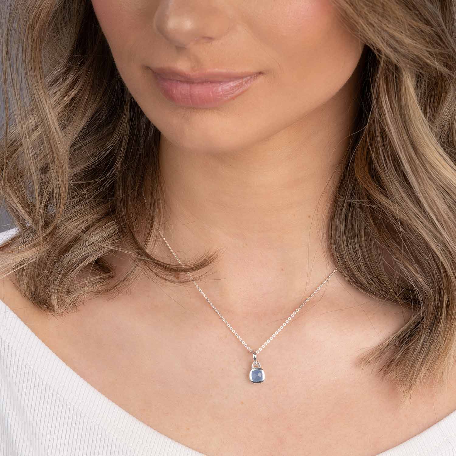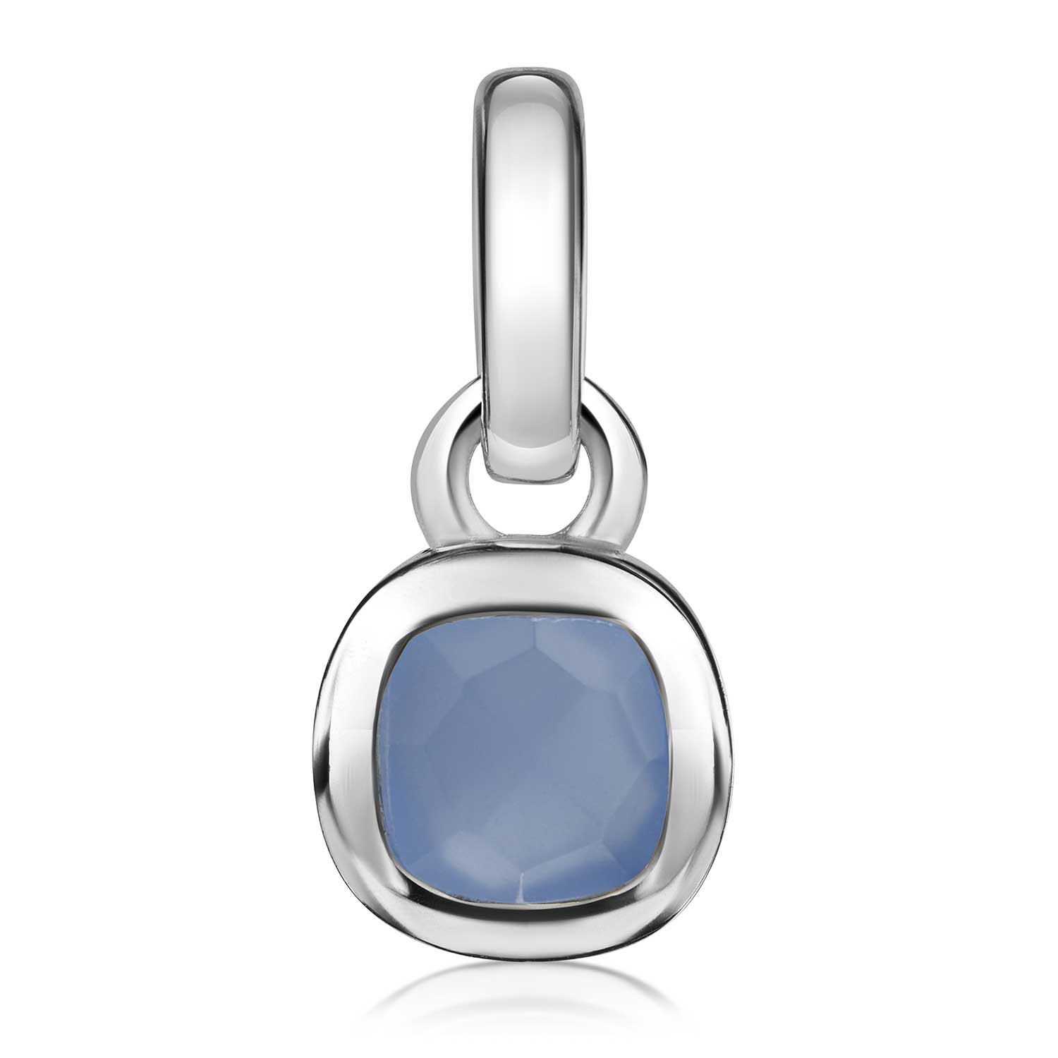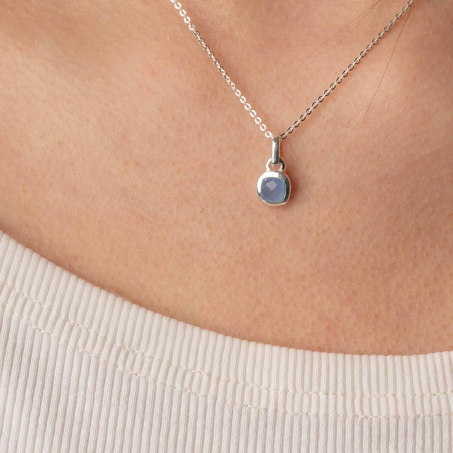 Quadratischer Kettenanhänger aus 925 Sterling Silber mit einem facettierten Chalcedon-Stein. Wahlweise mit einer passenden Ankerkette erhältlich.