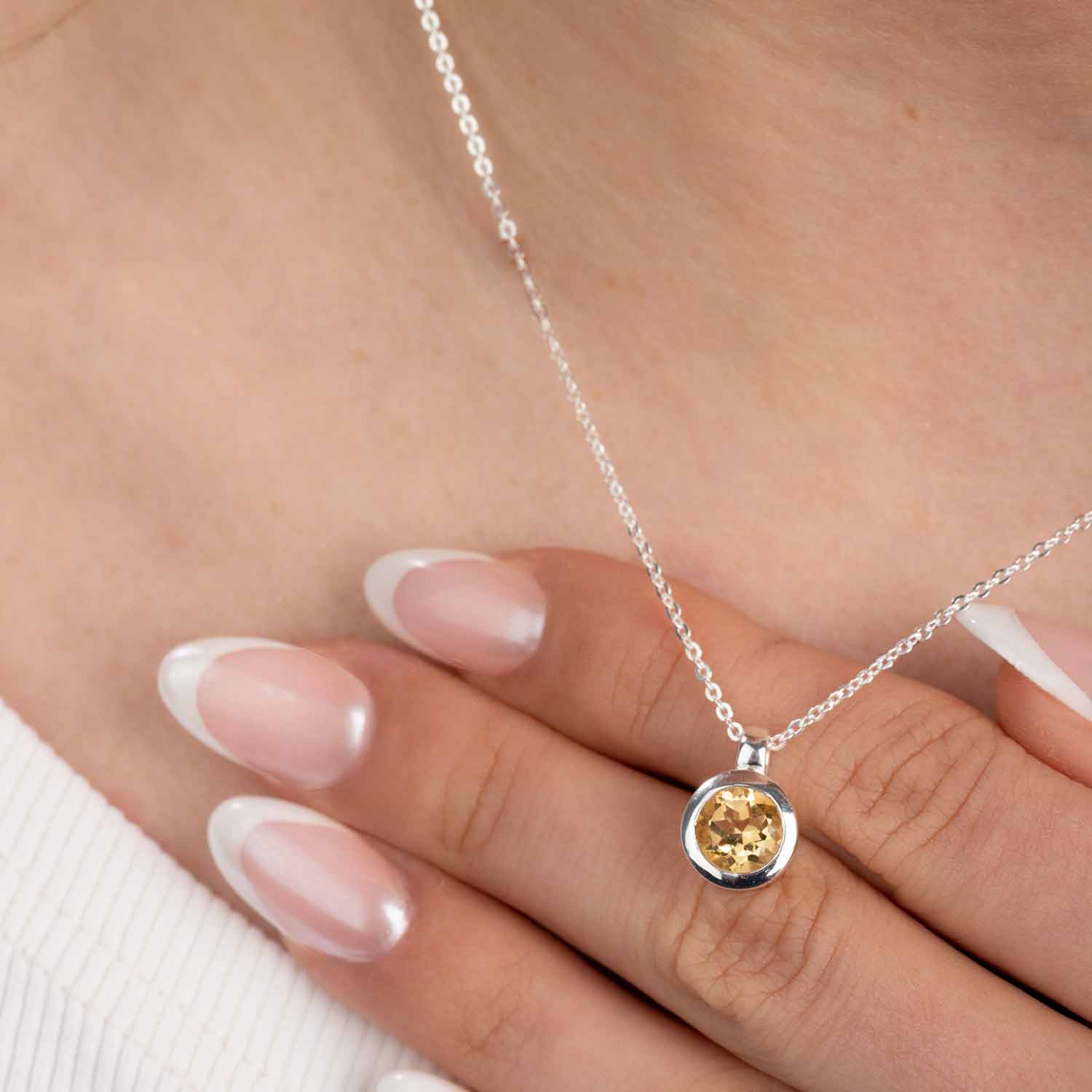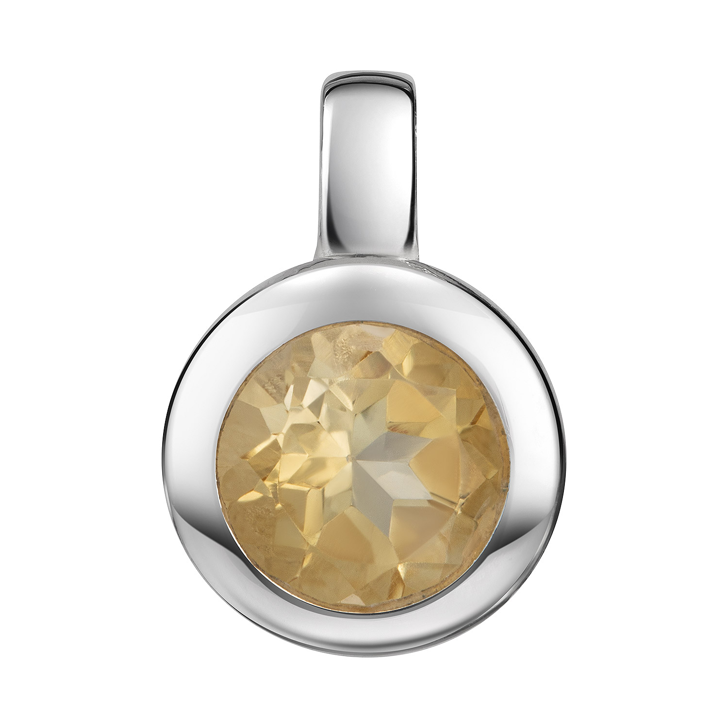 Runder Kettenanhänger aus 925 Sterling Silber mit einem facettierten Citrin. Wahlweise mit einer passenden Ankerkette erhältlich.