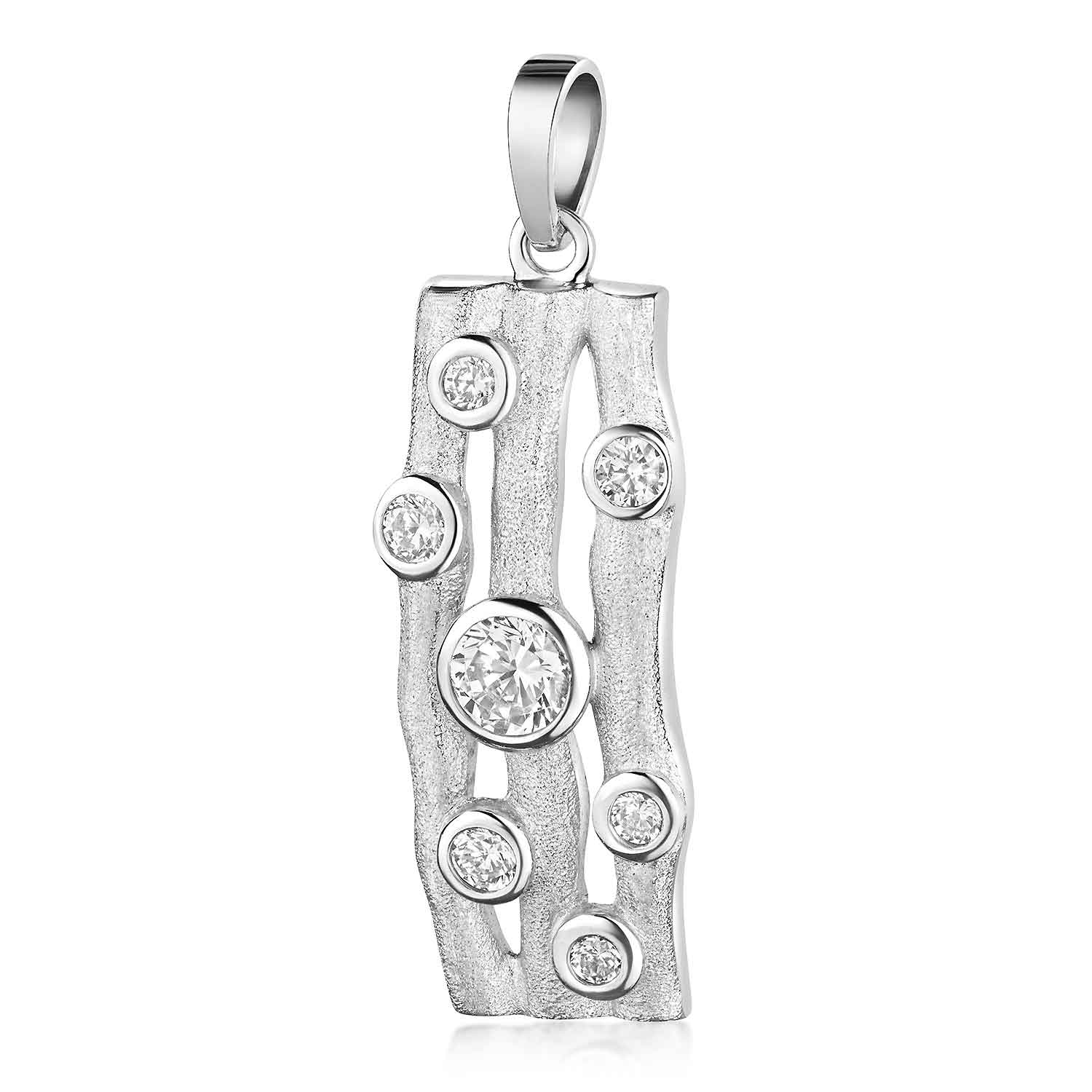 Unser Damen Kettenanhänger besticht durch seine ausgezeichnete Qualität. Er besteht aus rhodiniertem 925 Sterling Silber mit gebürsteter Oberfläche. Das Highlight bilden die weißen Zirkonia Steine unterschiedlicher Größe, die das Schmuckstück sanft schimmern lassen. Die Lieferung erfolgt in einer Materia Schmuckbox, wodurch es sich bestens als Geschenk eignen.