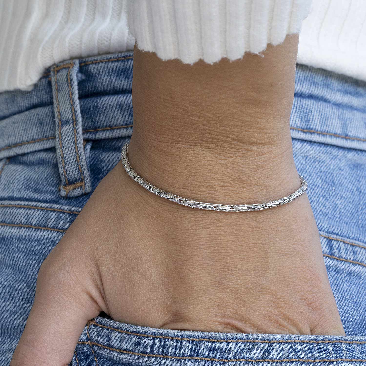 MATERIA Damen Königsketten Armband 2,5mm aus deutscher Silberschmiede in hochwertigster Qualität. Das Silber Armband ist aus rhodiniertem 925 Sterling Silber gearbeitet. Das abgerundete, formschöne Design eignet sich hervorragend für Damen und Mädchen jeden Alters. Es ist in 4 verschiedenen Längenausführungen in 17cm, 19cm, 21cm und 23cm erhältlich.