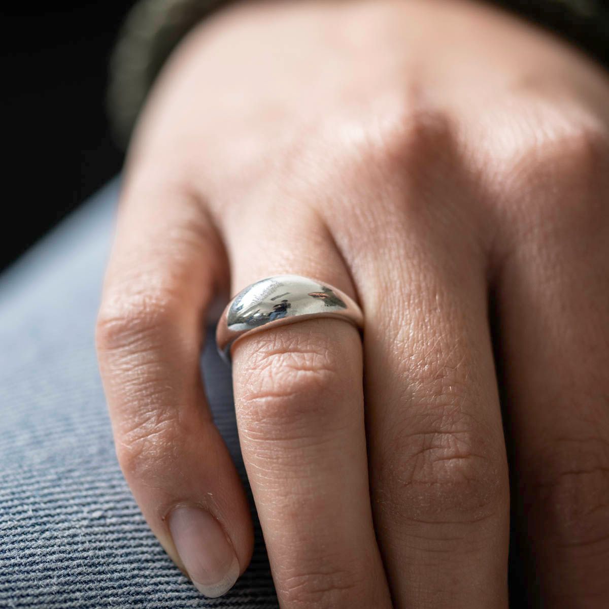 Edler gewölbter Damen Ring aus 925 Sterling Silber. Tragen Sie den trendigen Silberring alleine als Statement Ring oder in Kombination mit anderen Ringen.