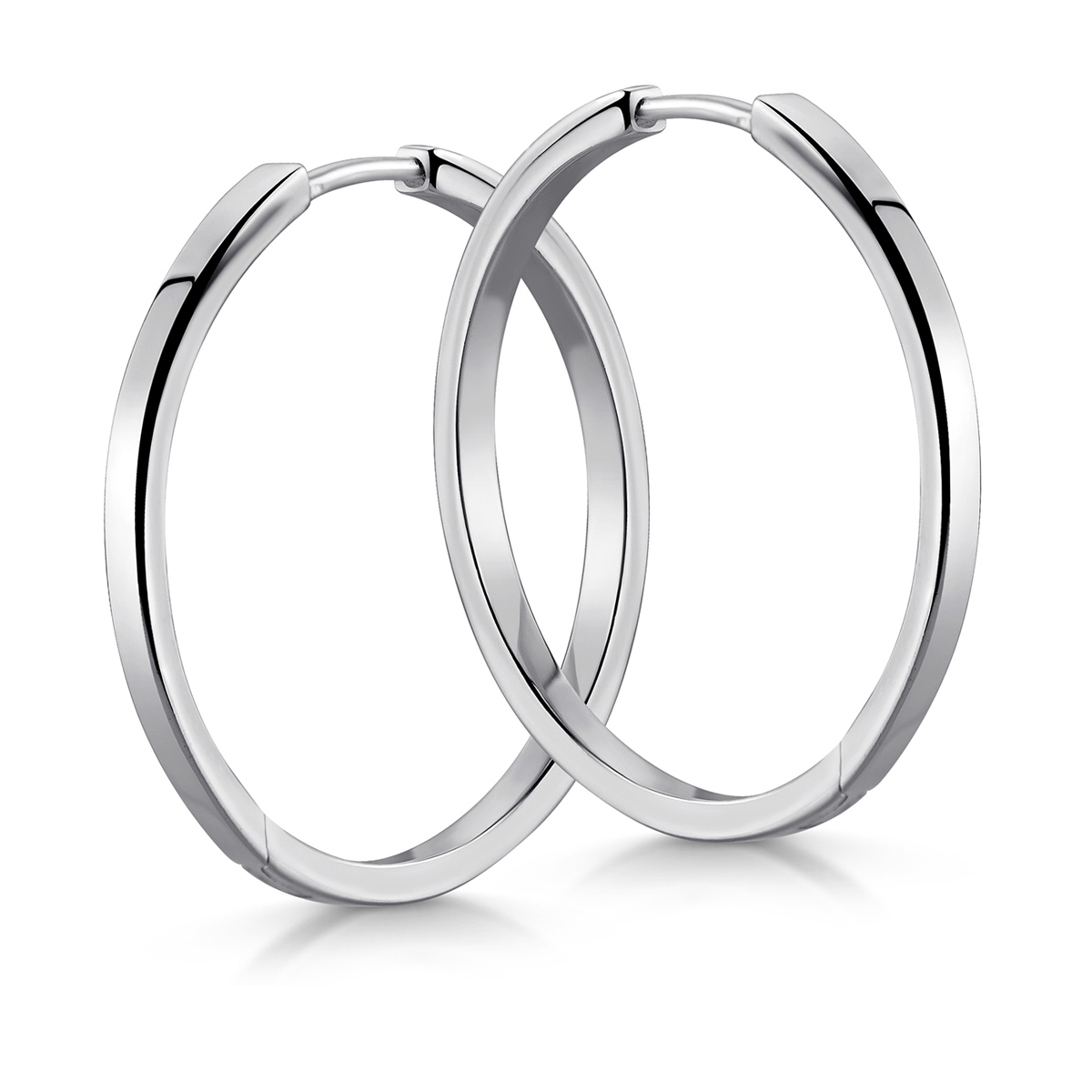 Schlichte Creolen aus rhodiniertem 925 Sterling Silber mit Klappverschluss.