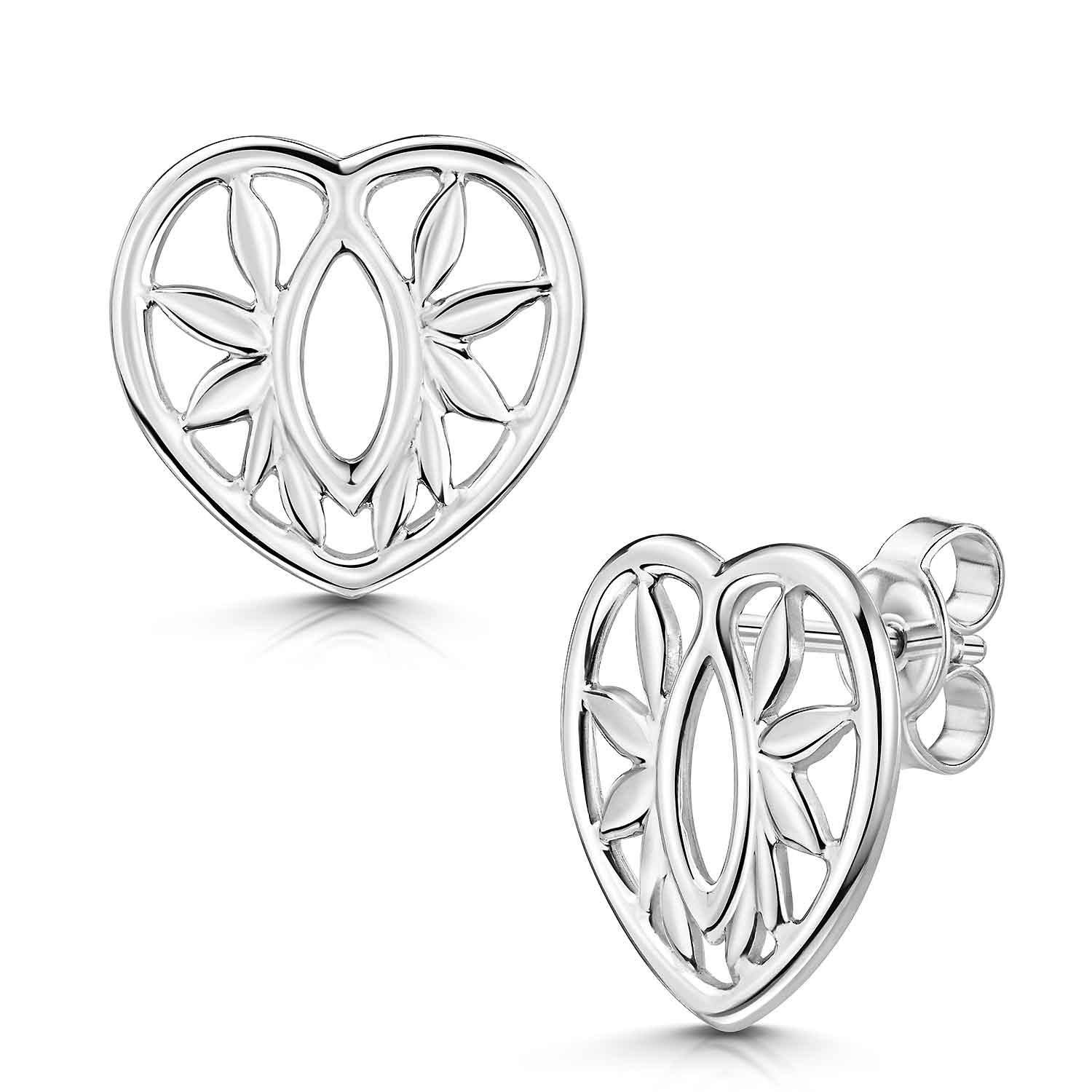 Filigrane Ohrstecker aus massivem 925 Sterling Silber in Herzform in hervorragender Verarbeitung. Diese Herz Stecker wurden rhodiniert und sind somit gegen ein Anlaufen des Silbers geschützt.