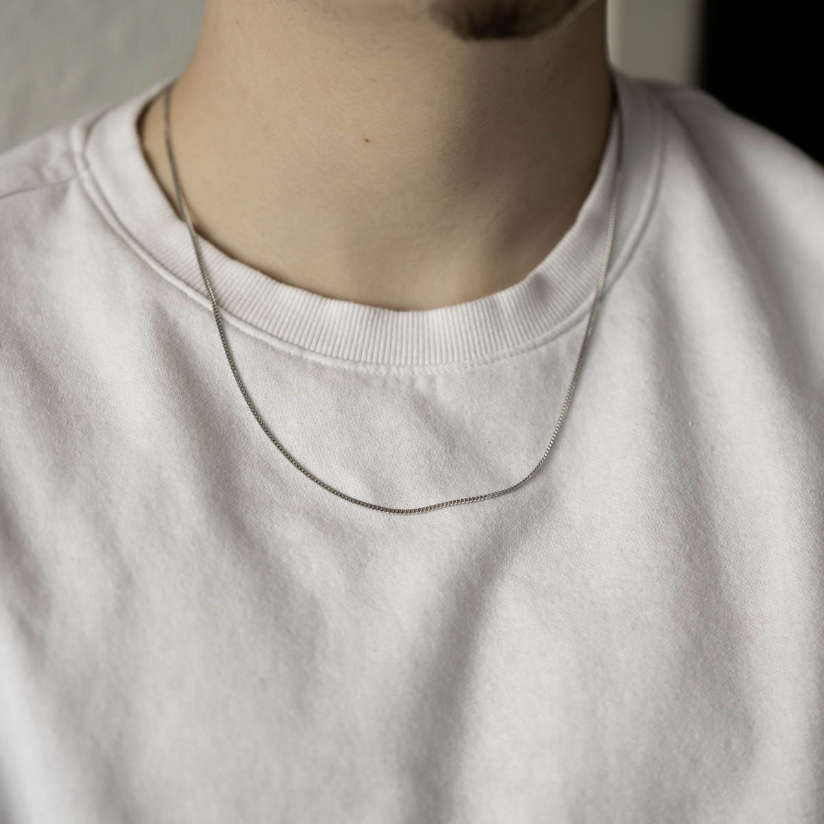 Damen Halskette 1,7mm im flachen Panzerketten Design, hergestellt aus rhodiniertem 925 Sterling Silber - Made in Germany