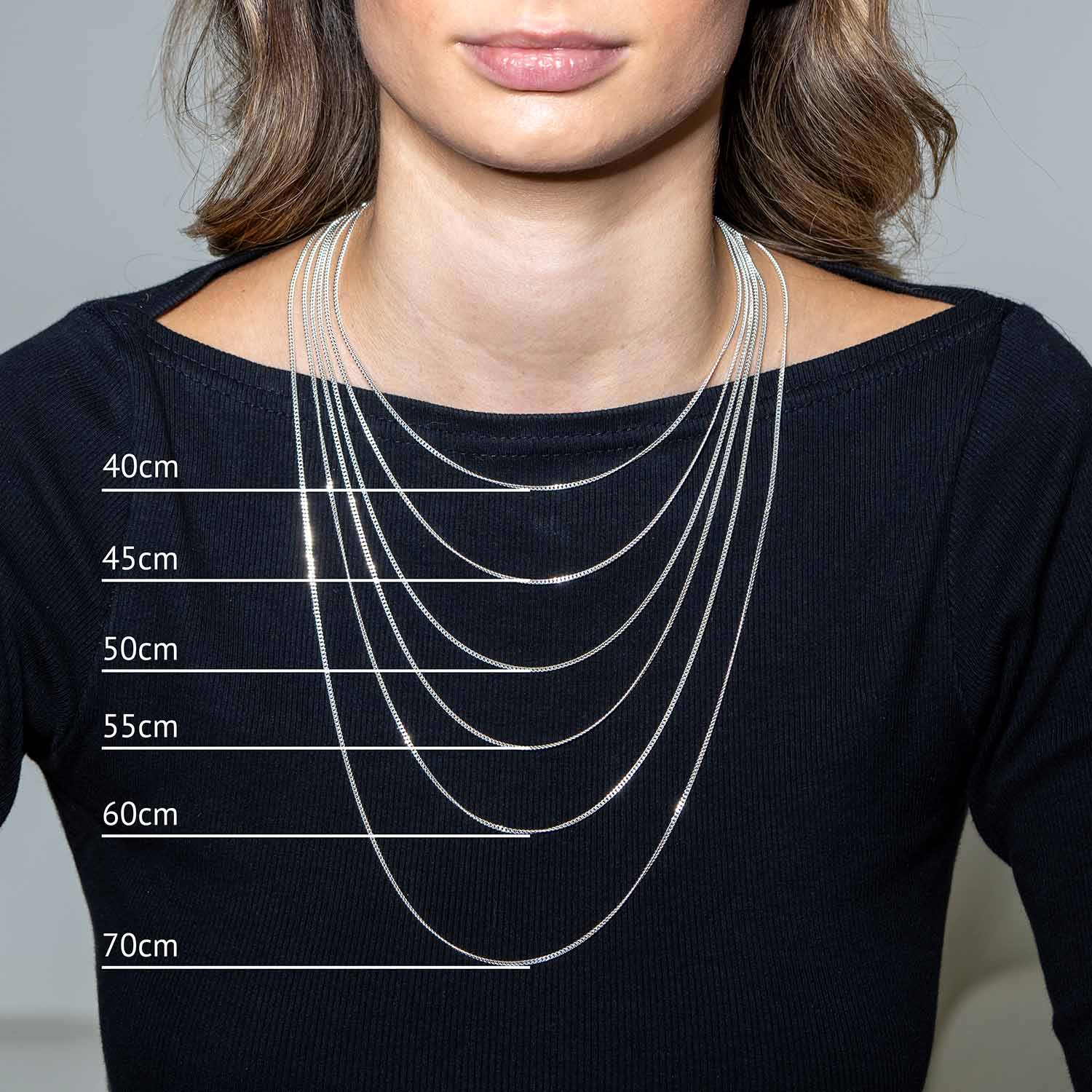 Unsere Panzerkette aus 925 Sterling Silber hat eine solide, massive Verarbeitung, die keinen Zweifel an der Langlebigkeit des Schmuckstückes lässt. Die klassische Halskette kann mit oder ohne Anhänger zu vielen Anlässen getragen werden und ist in 40 bis 70cm Länge erhältlich. Durch eine zusätzliche Veredelung mit Feinsilber erhält diese Silberkette ihren wunderschönen hellen Silberfarbton.