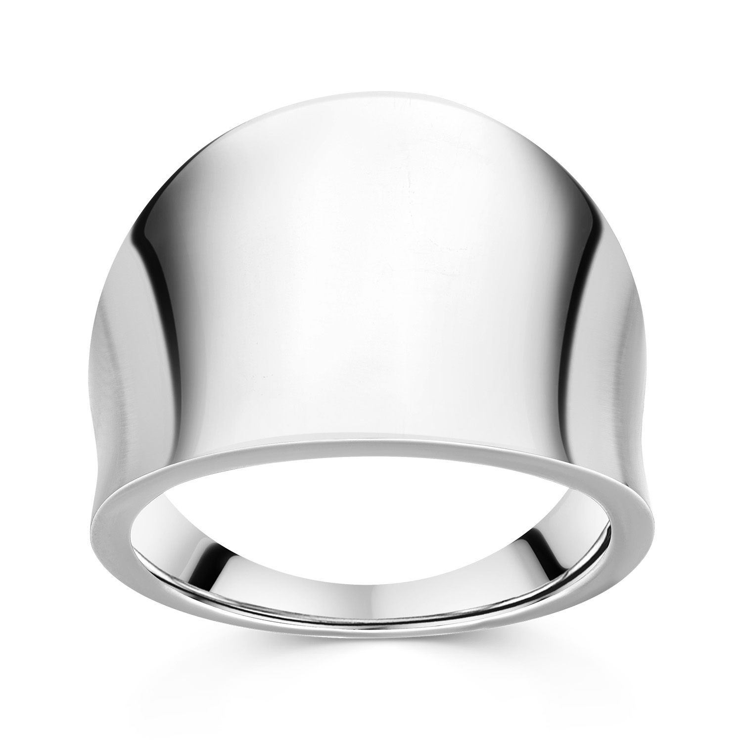 925 Silber Ring in schlichtem, hochglanzpoliertem Design mit gewölbtem, breitem Ringkopf. Er eignet sich hervorragend für jede Art von Gravur und wurde zusätzlich rhodiniert.