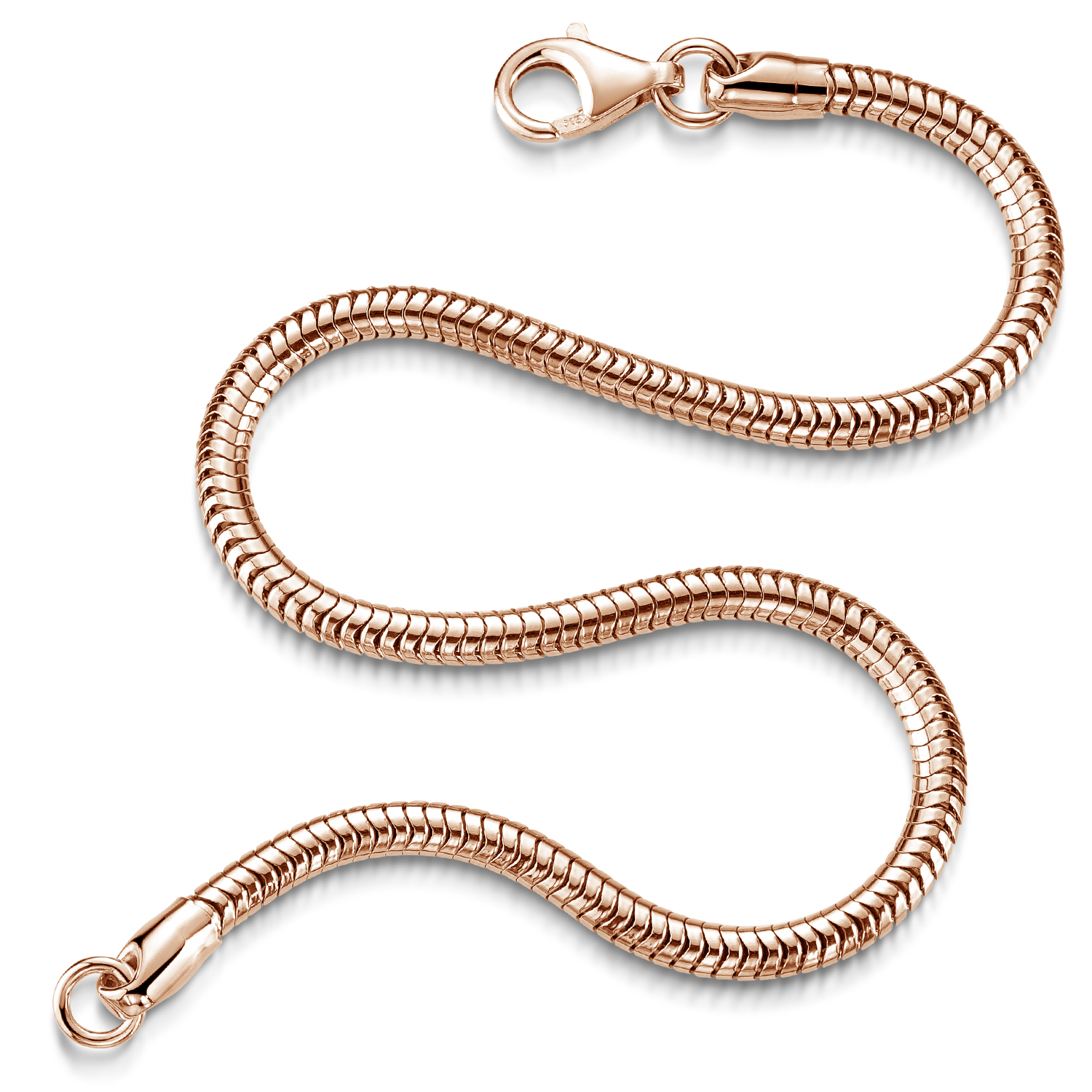 Edles Schlangenkette Armband für Damen aus rosegold vergoldetem 925 Sterling Silber, gefertigt in deutscher Silberschmiede.