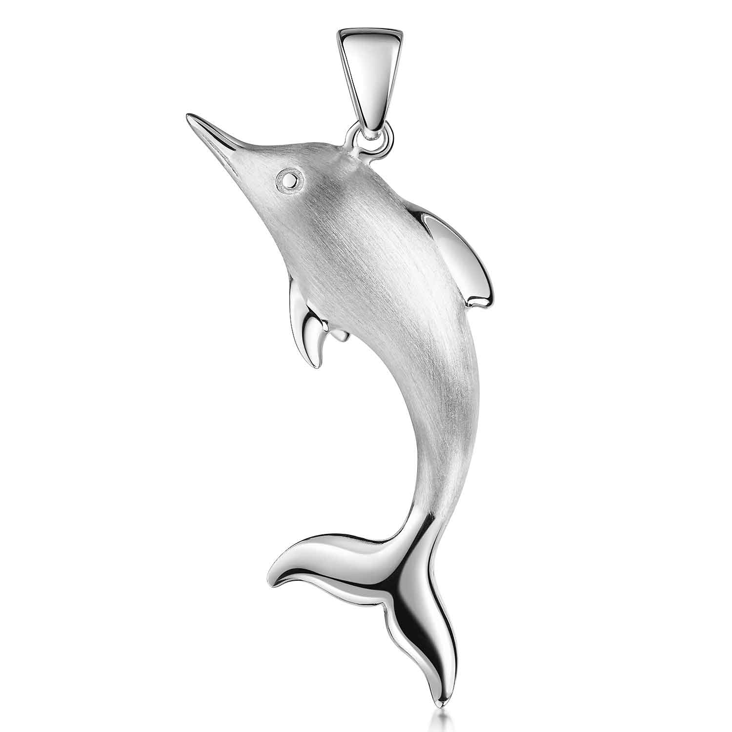 Damen Kettenanhänger in Form eines Delfins aus 925 Sterling Silber - teilweise mattiert. Der Anhänger ist wahlweise mit einer passenden Halskette im Set erhältlich.