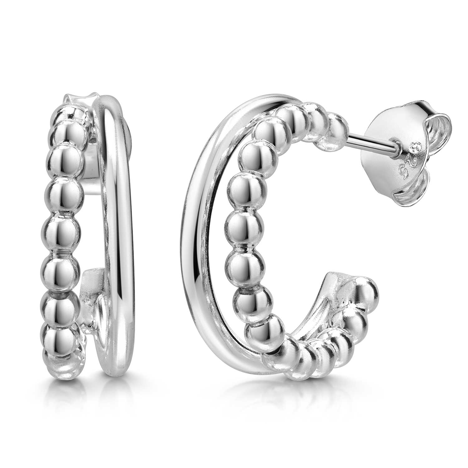 Modische Doppel-Creolen Ohrstecker mit 16 Silberkugeln aus 925 Sterling Silber. Klassische Butterfly-Verschlüsse sorgen für sicheren Halt.