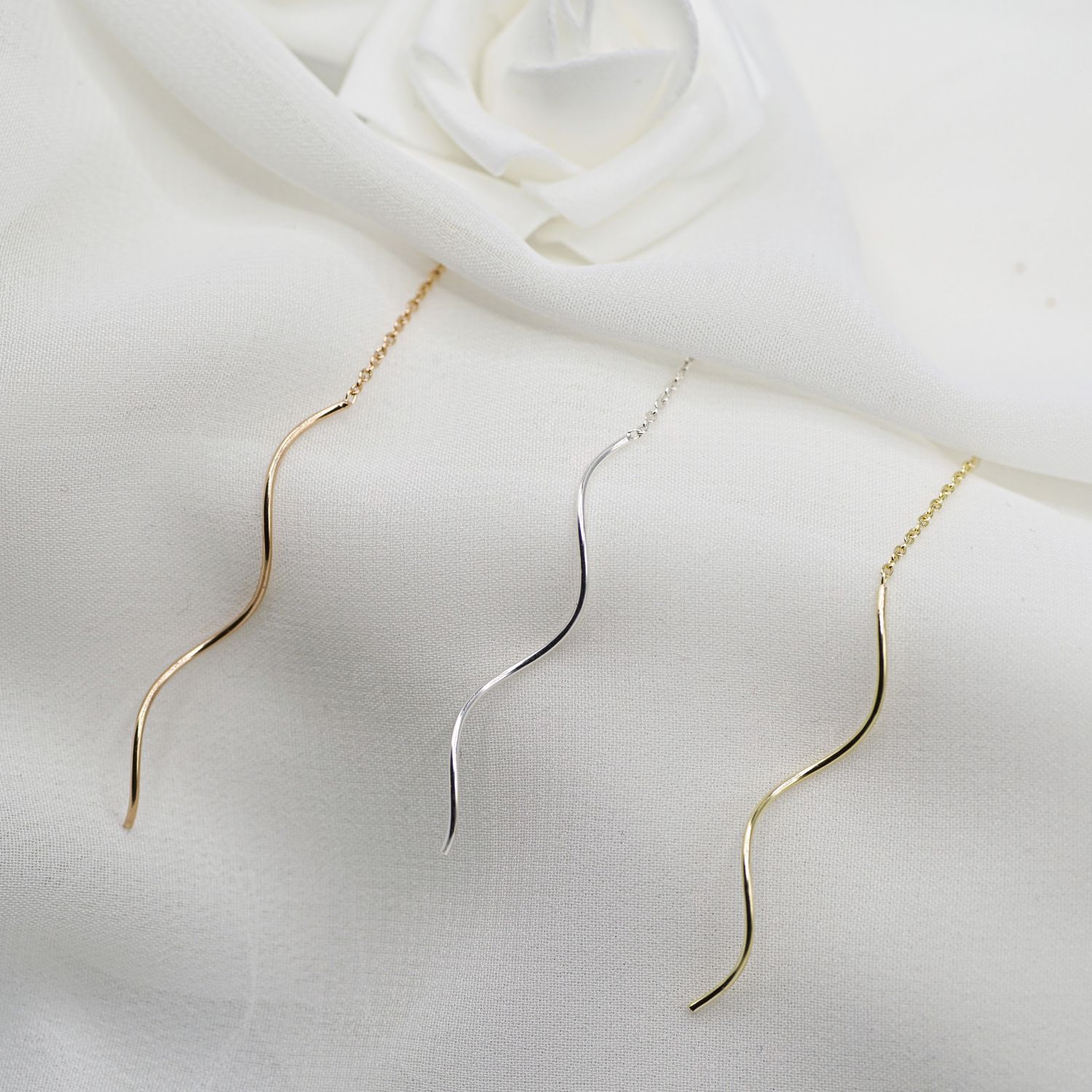 Diese zarten Durchzieher Ohrringe wurden aus 925 Sterling Silber gearbeitet. Sie bestehen aus einem Ankerkettchen, an dem jeweils eine Spirale befestigt ist. Die Schmuck Ohrhänger sind sehr leicht und komfortabel beim Tragen.