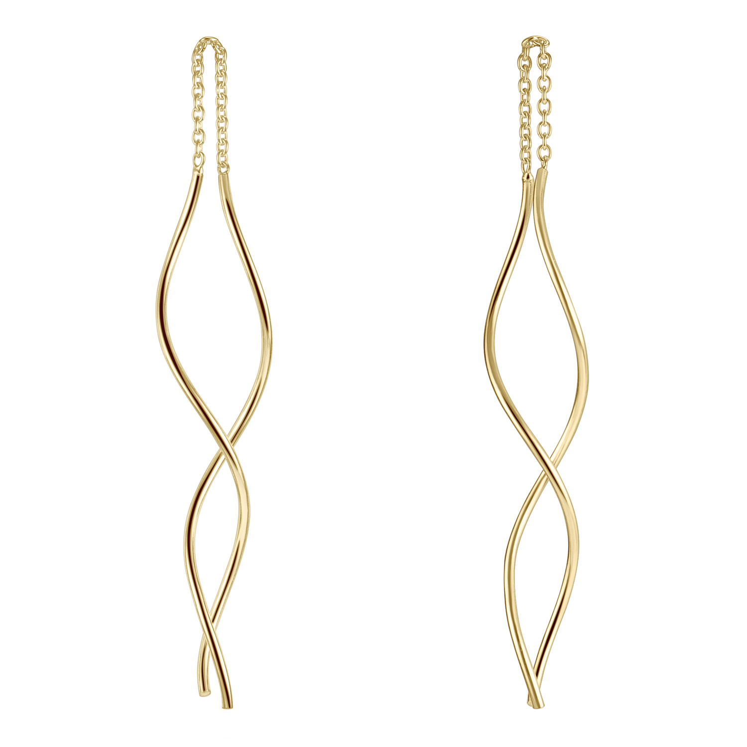 Elegante Durchzieher Ohrringe mit Spiralen aus vergoldetem 925 Sterling Silber. Die Schmuck Ohrhänger sind leicht und angenehm im Tragekomfort.