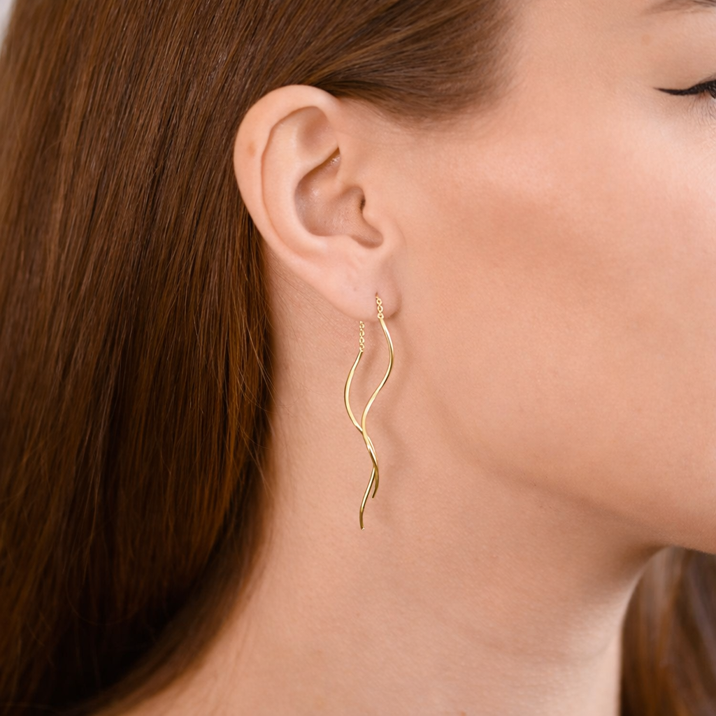 Gönnen Sie sich oder jemandem, den Sie schätzen, den Luxus und die Schönheit dieser einzigartigen vergoldeten Ohrringe. Ihre hochwertige Verarbeitung und das ansprechende Design werden garantiert bewundernde Blicke auf sich ziehen. Lassen Sie sich von der Spirale inspirieren – sie steht für Veränderung und Fortschritt, Eigenschaften, die in der heutigen Zeit von großer Bedeutung sind. Tragen Sie diese langen Ohrringe und setzen Sie ein stilvolles Statement!