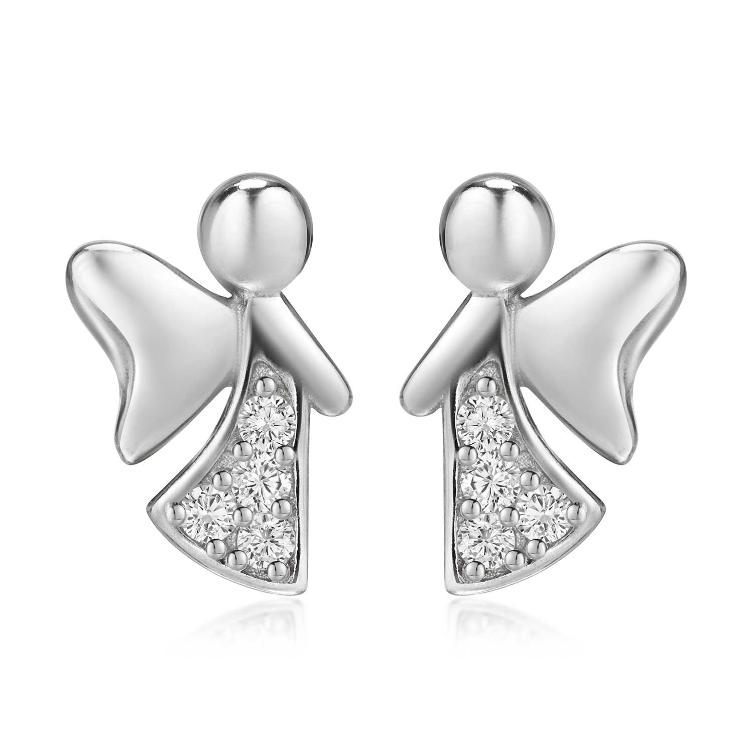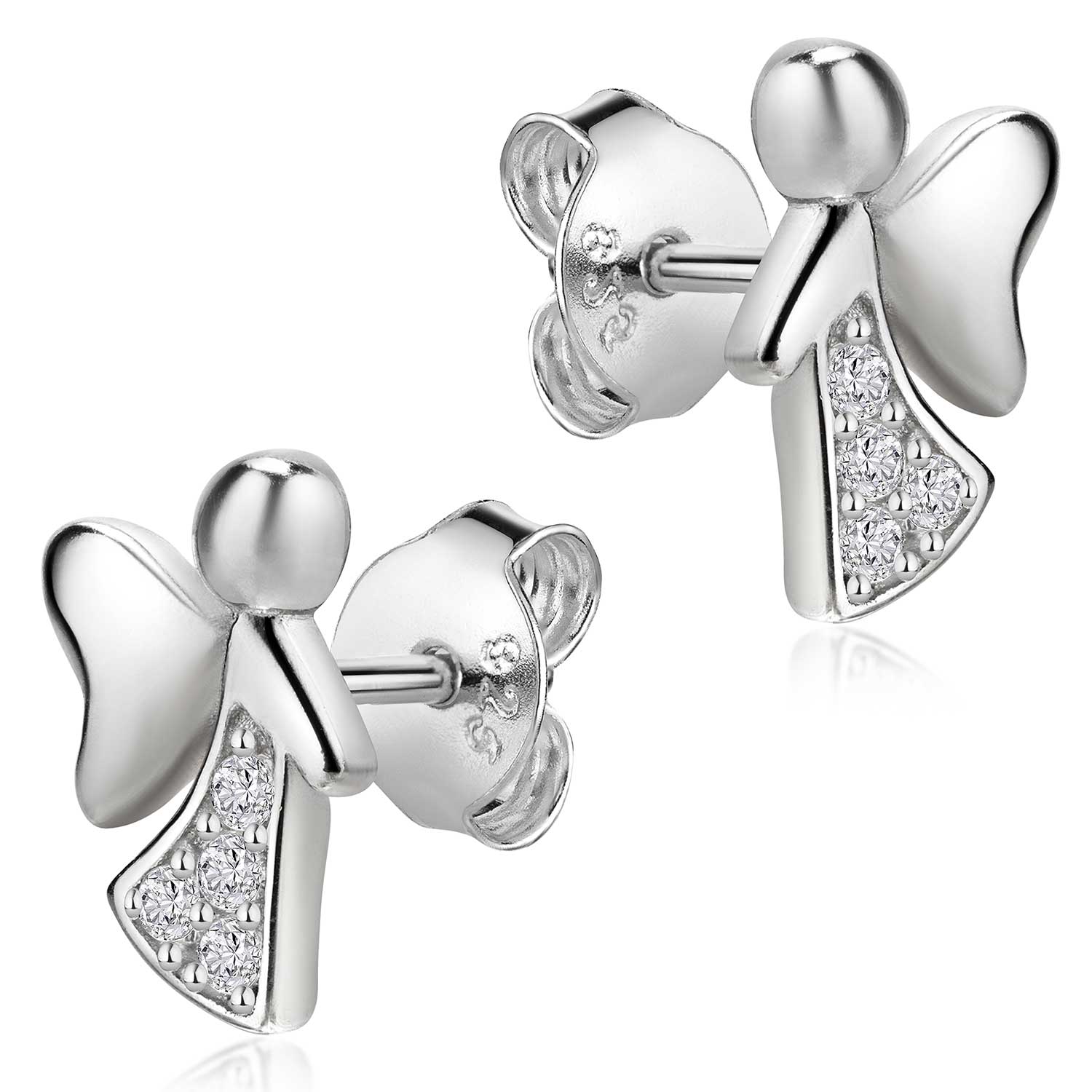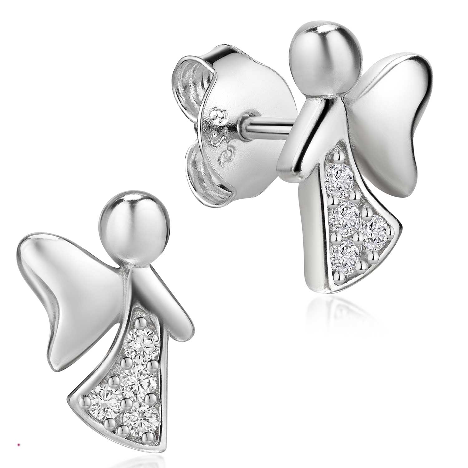 Bezaubernde Engel Ohrstecker aus 925 Sterling Silber. Die Damen Ohrringe sind mit weißen Zirkonia Steinen verziert.