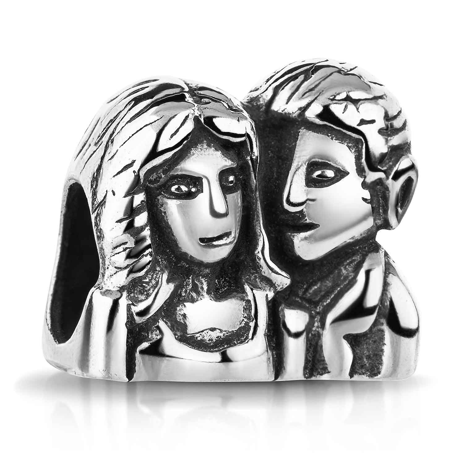 Verträumtes 925er Silber Bead Motiv: Verliebtes Pärchen, gefertigt aus massivem Sterling Silber im antik Style für Beads Armbänder & Ketten bis zu 4,4mm Stärke.