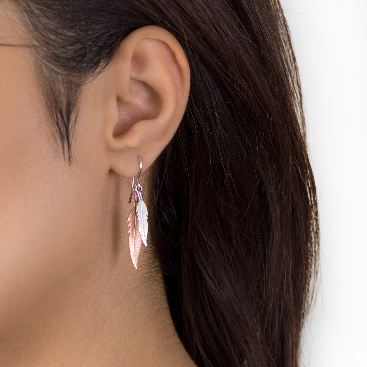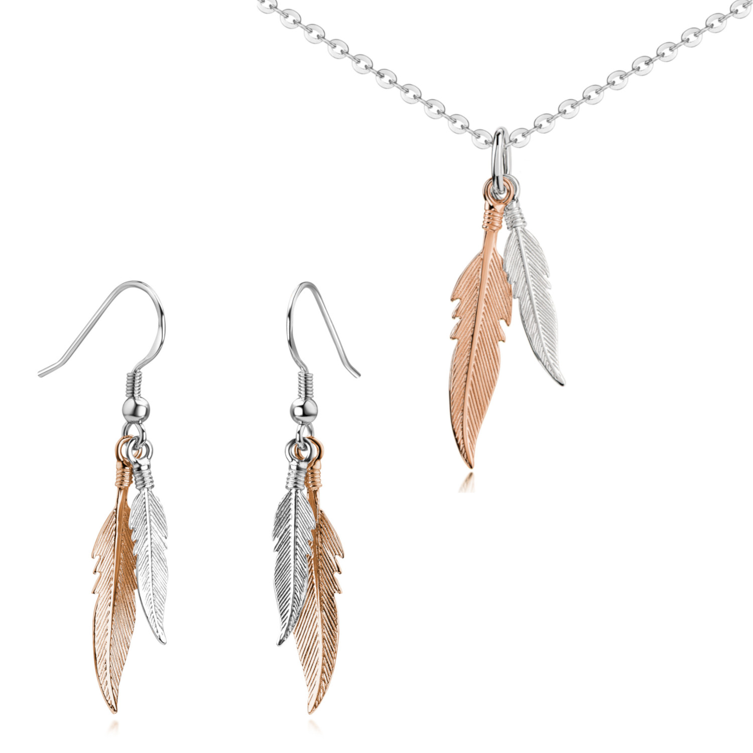 Exklusives Feder Schmuckset in Bicolor Optik aus rosé vergoldetem 925 Sterling Silber.