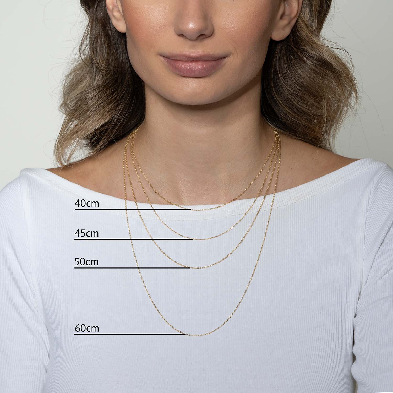 - Kettenlänge: erhältlich in 4 verschiedenen Längen: 40/45/50/60cm