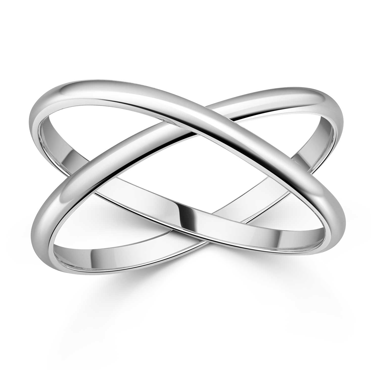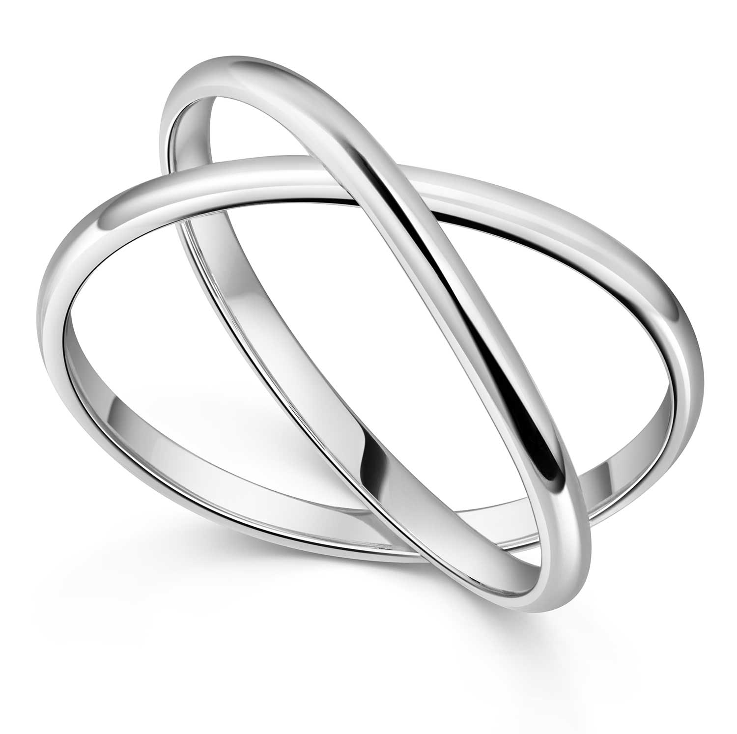 Damen Ring aus 925 Sterling Silber in Form zweier ineinander verschlungener Ringbögen. Der Silberring zeichnet sich durch ein ansprechendes und dezentes Design aus.