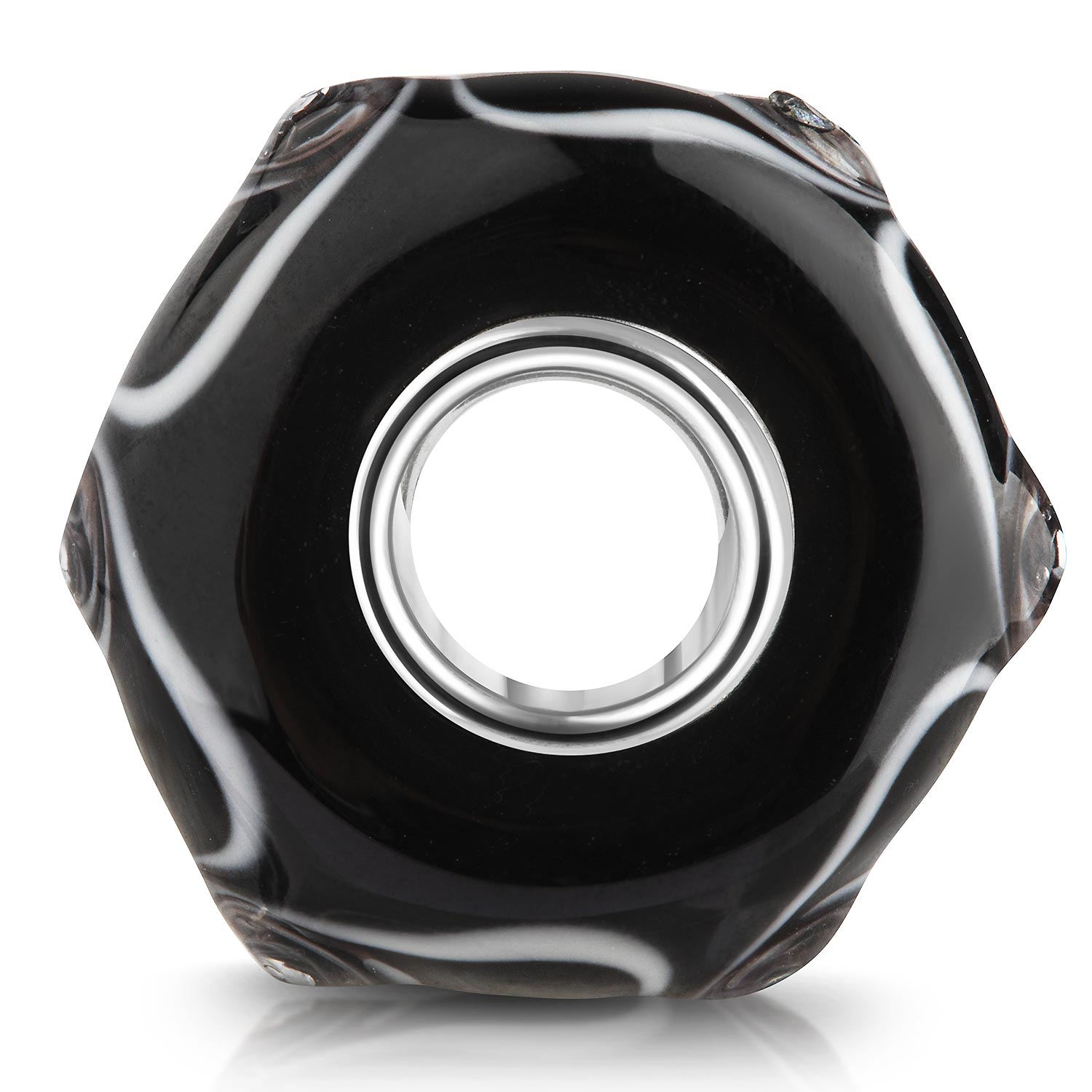 3D Glas Bead in Schwarz - Weiß