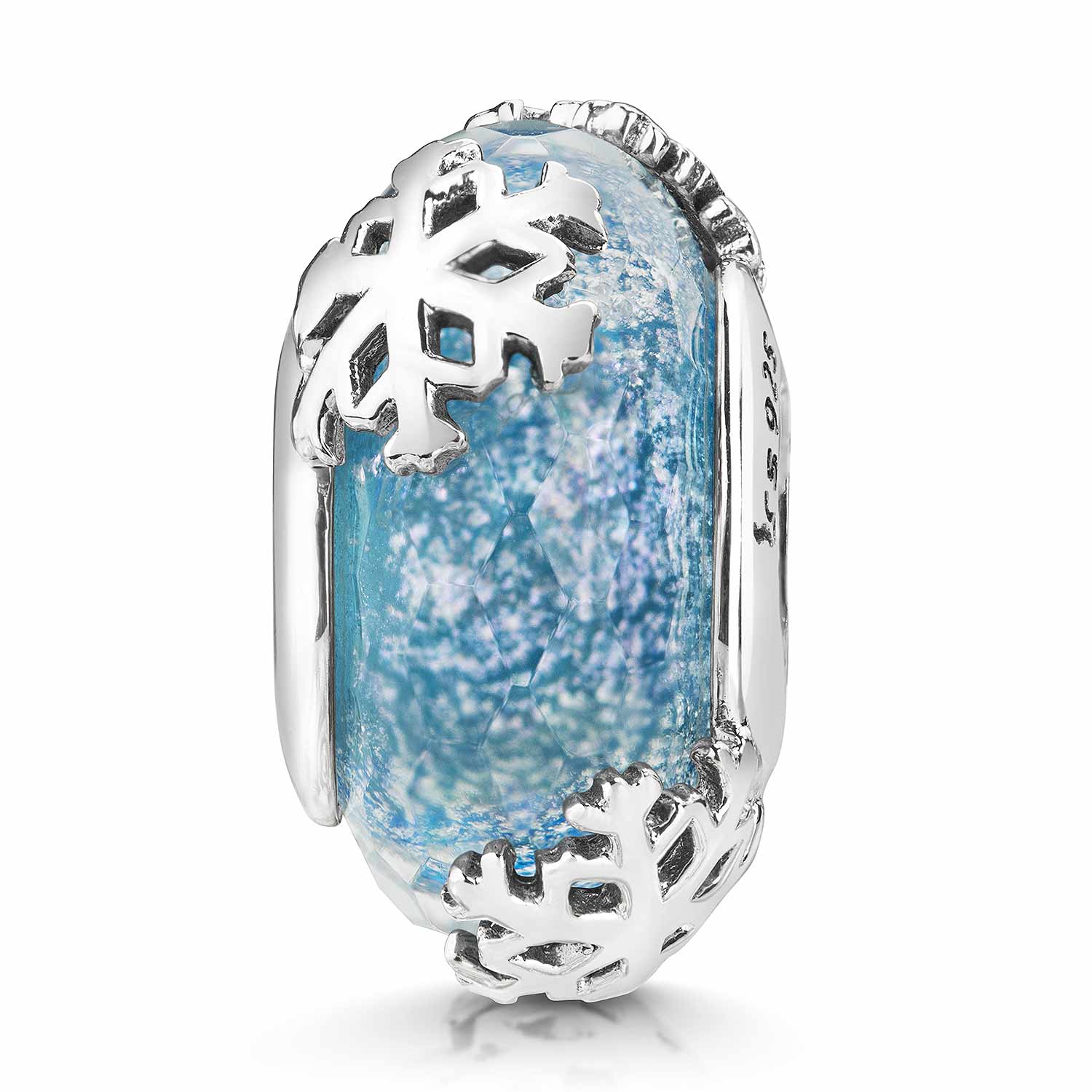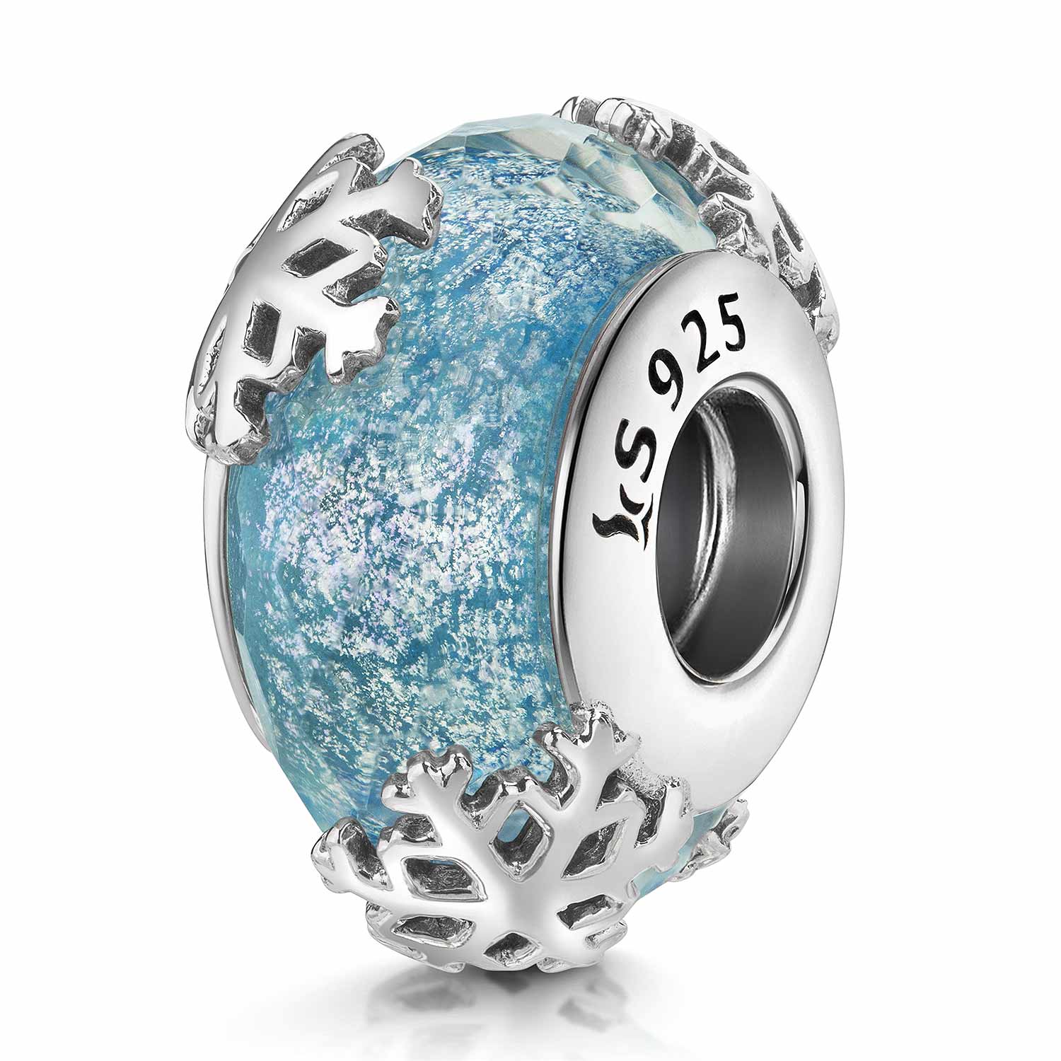 Wunderschöner Bead mit Schneeflocken aus 925 Sterling Silber und facettiertem blauem Glas. Der Glasbead ist für Beads Armbänder und Ketten bis max 4,4mm Durchmesser geeignet.