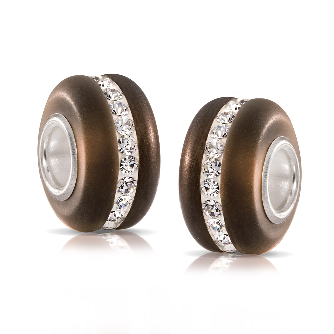 Brauner Glas Bead mit Strass Steinen und einer 925er Sterling Silber Hülse - passend zu allen gängigen Beads Armbändern & Ketten bis 4,4mm Stärke.