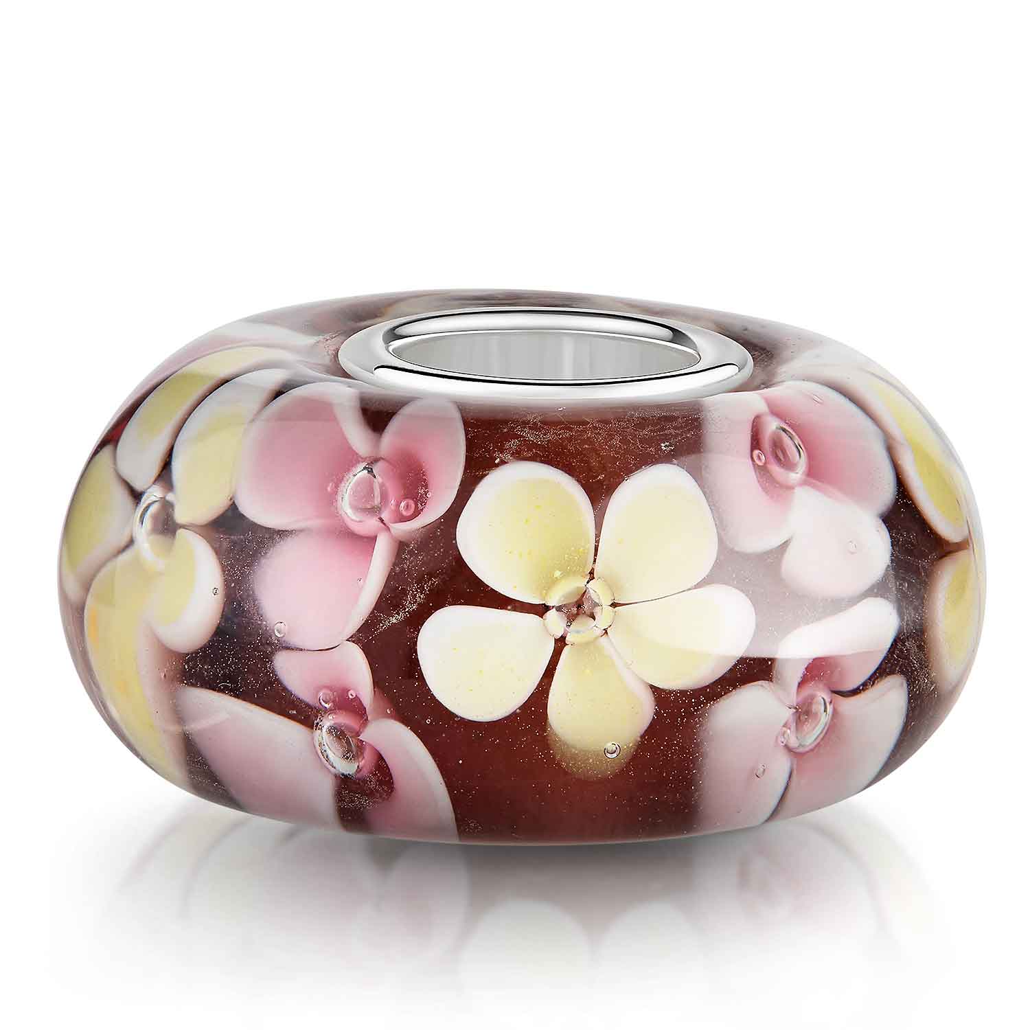 Dieser Bead aus Glas in Dunkelrot ist mit zahlreichen Blumen in Rosa und Gelb verziert. Er ist passend zu allen gängigen Beads Armbändern und Ketten bis max. 4,4mm Breite und ist daher für alle Marken Beads geeignet. Mit diesem und anderen farbenfrohen Beads aus unserer Kollektion können Sie Farbakzente setzen und so Ihren Look individuell gestalten.