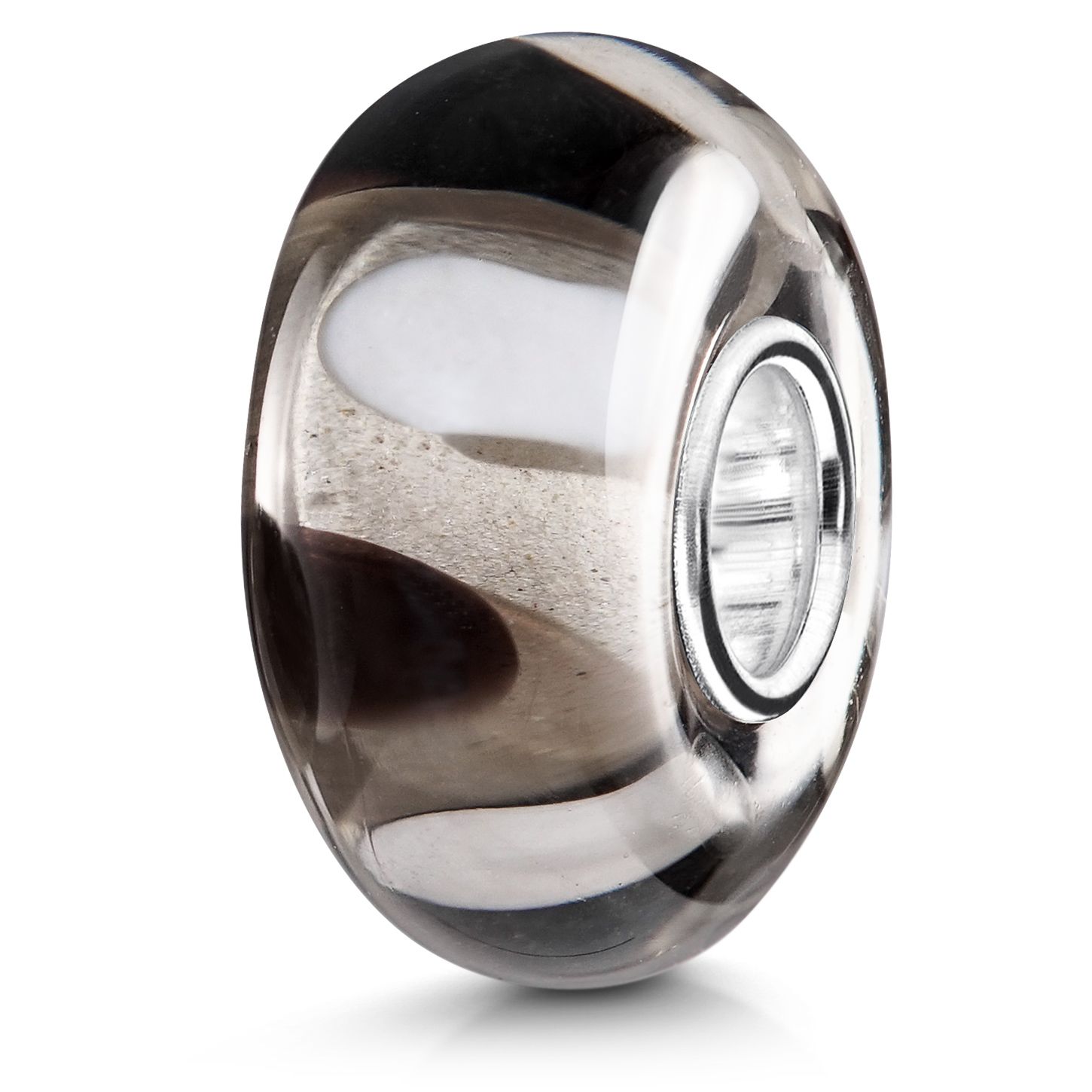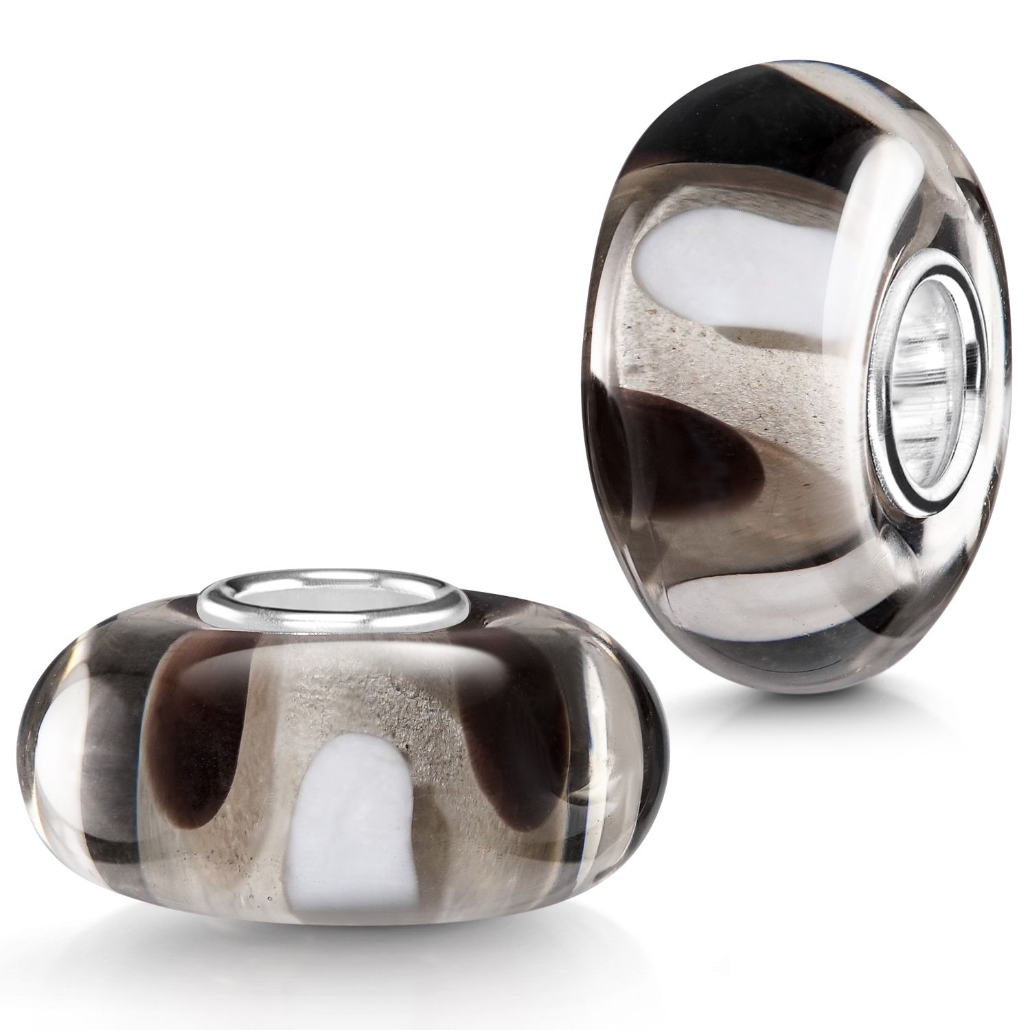 Grauer Glas Bead mit braunen und weißen Punkten und einer Hülse aus 925 Sterling Silber. Die Glasperle ist für Beads Armbänder und Ketten bis max 4,4mm Durchmesser geeignet.