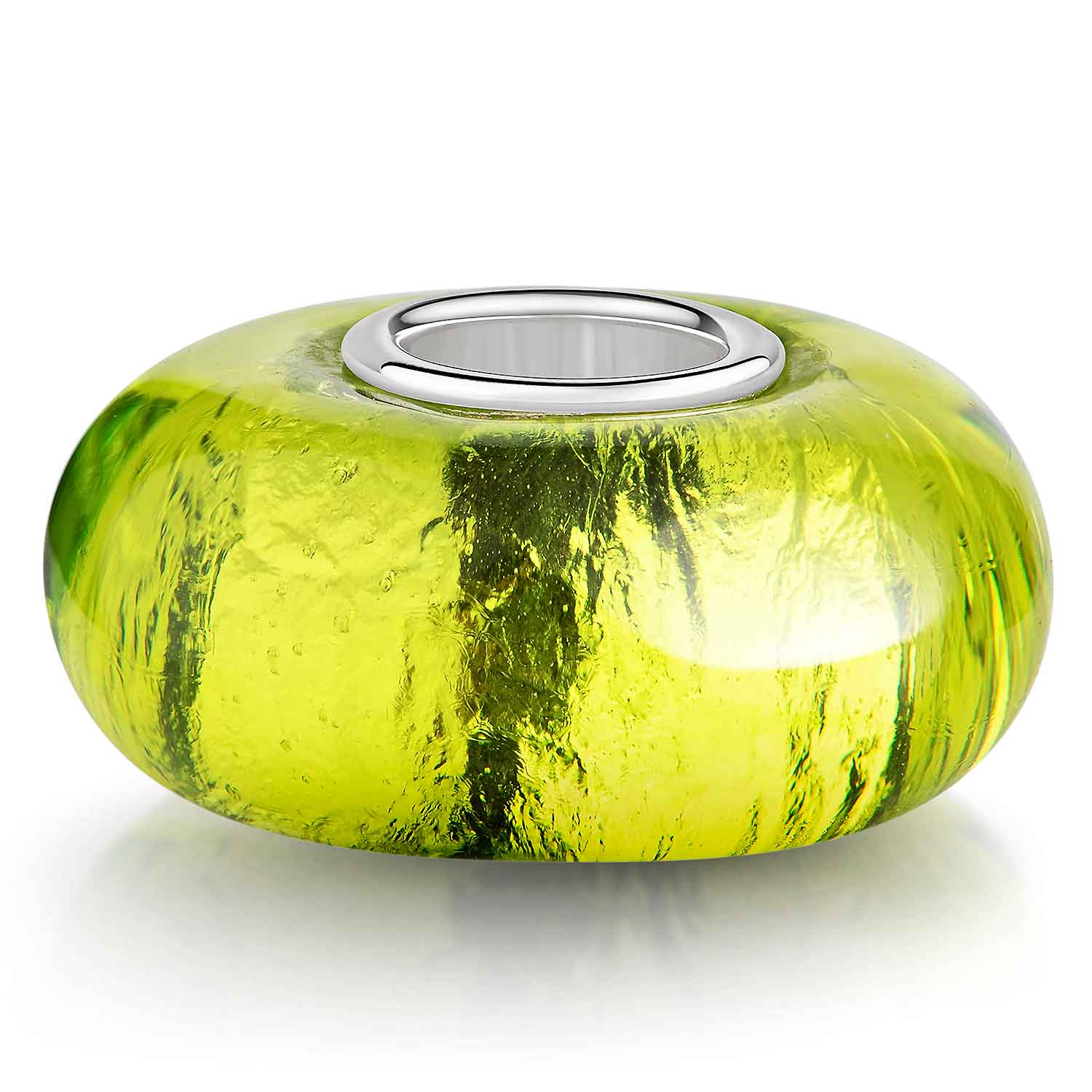 Glas Bead in Grün mit eingearbeiteter Glitzerfolie. Der Bead ist passend zu allen gängigen Schmuck Bead-Armbändern & Ketten anderer großer Marken bis max. 4,4mm Lochdurchmesser.
