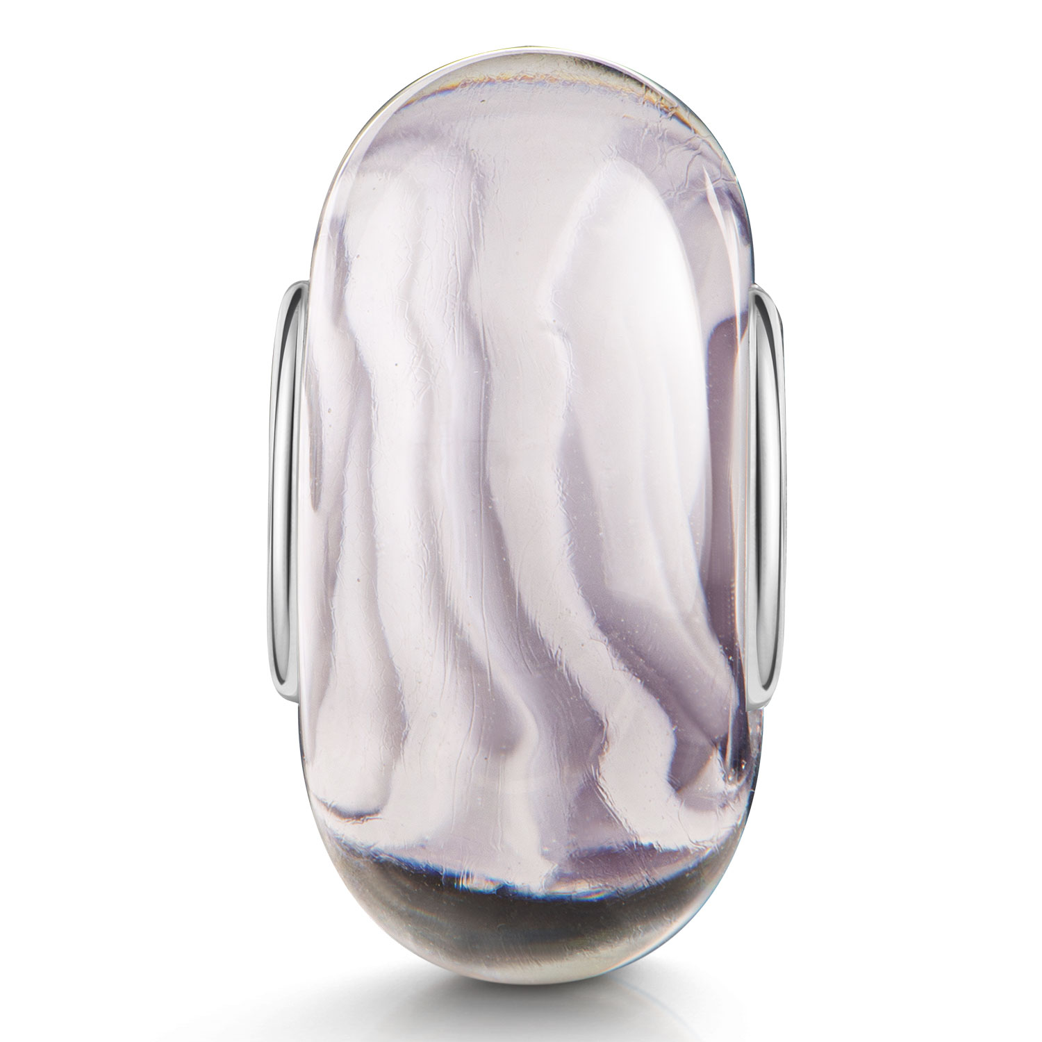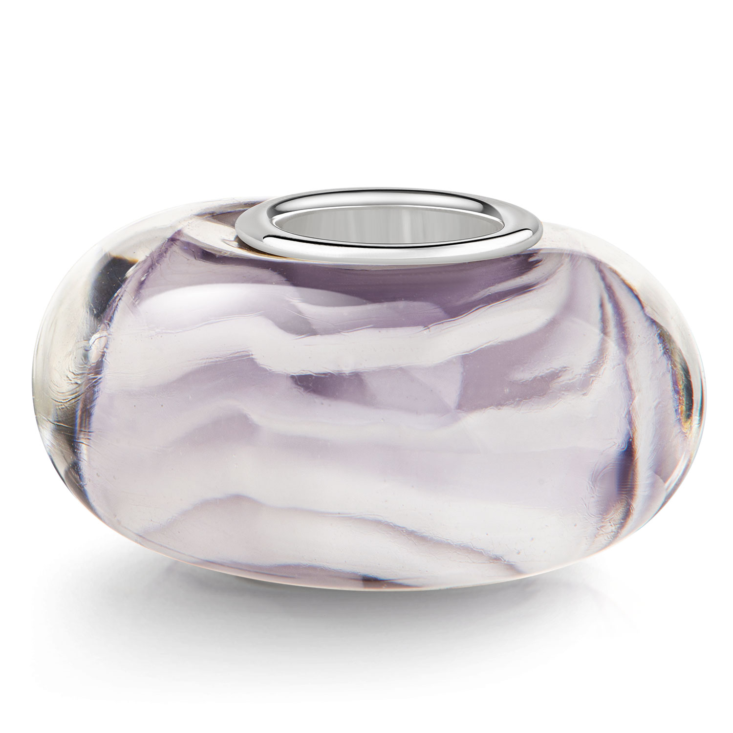 Edler Glas Bead mit feinen Linien in Lila / Flieder und Weiß mit Hülse aus 925 Sterling Silber. Dieses European Beads Element ist passend zu allen gängigen Schmuck Bead-Armbändern & Ketten anderer großer Marken bis max. 4,4mm Dicke.