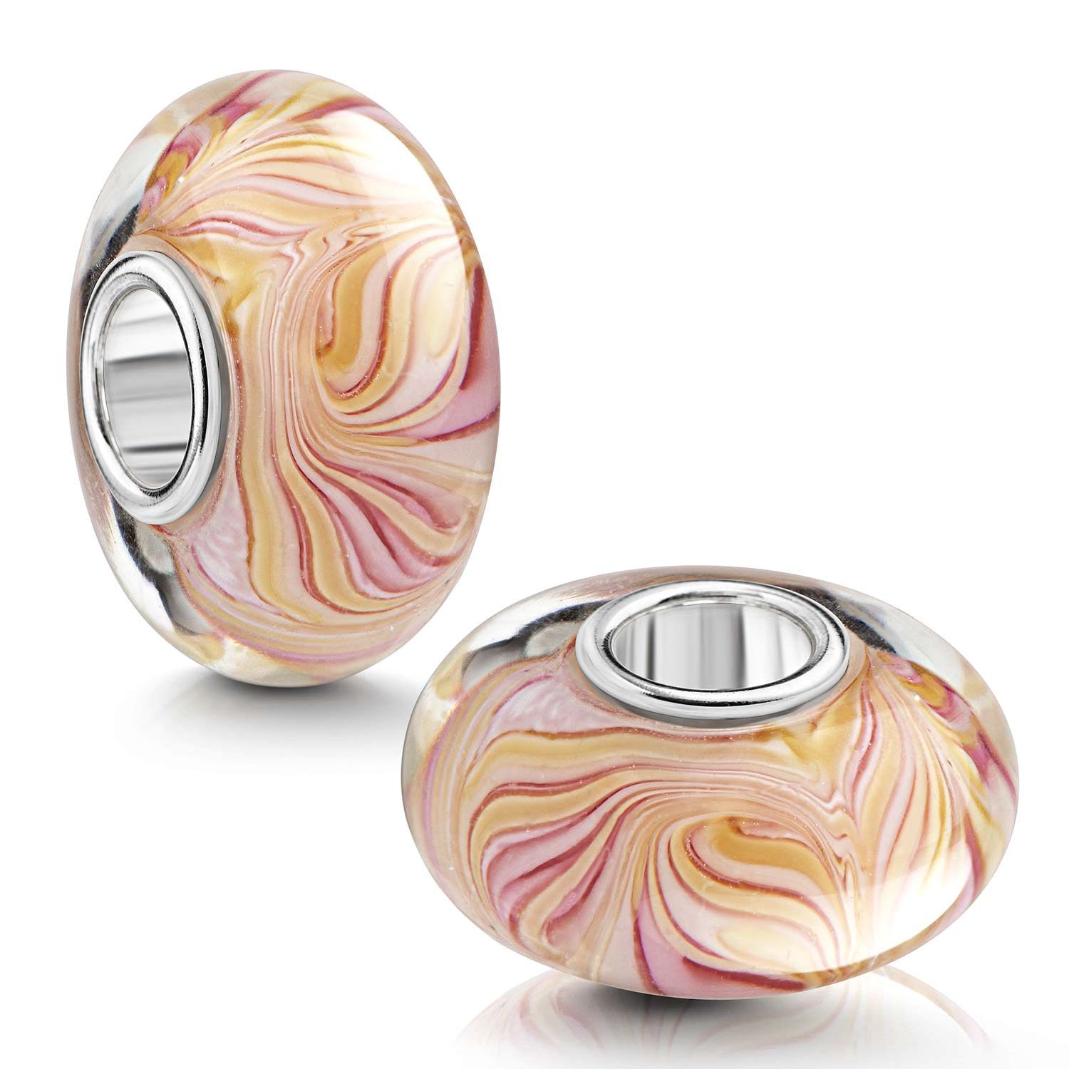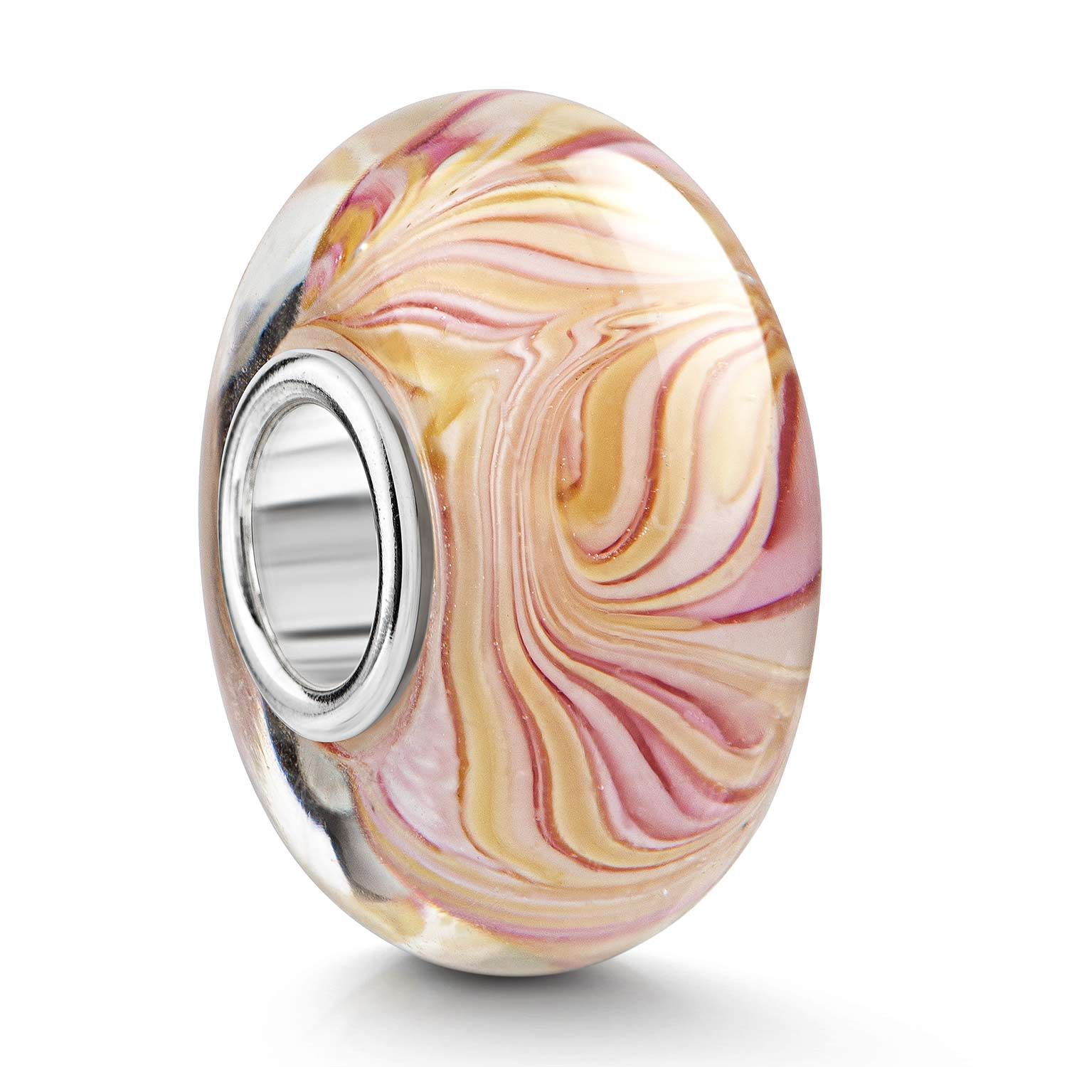 Glas Bead mit einem Muster in rosa und creme und einer Hülse aus 925 Sterling Silber. Die Glasperle ist für Beads Armbänder und Ketten bis max 4,4mm Durchmesser geeignet.