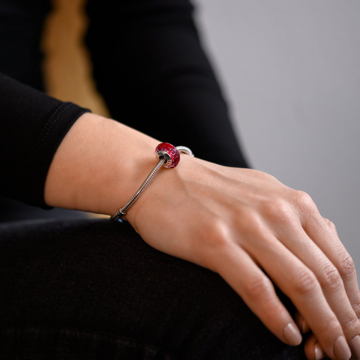 Dieser rote Charm besticht durch seinen einzigartigen Facettenschliff, welcher schimmert und strahlt, wenn das Licht auf seine Oberfläche trifft. Das Besondere an dieser Glasperle ist die breite und massive 925 Sterling- Silber Hülse, welche mit einem Gewinde ausgestattet ist.